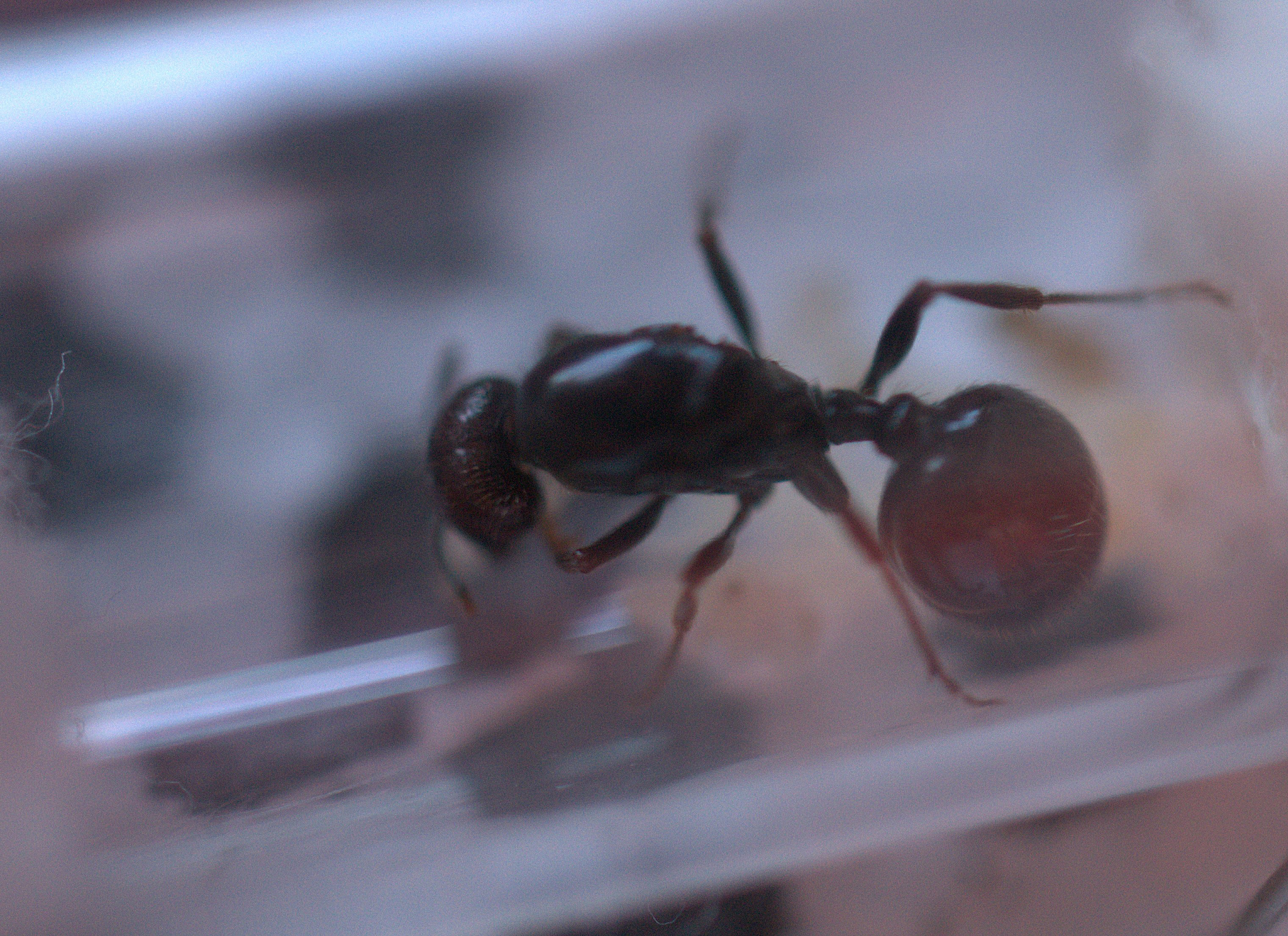 -Nota: volevo domandare una cosa a proposito del comportamento della regina... so bene che esistono specie ipogee con occhi composti più o meno sviluppati ( o magari del tutto cieche)... ma non credevo che le M. barbarus potessero essere caratterizzate da questa 'mancanza' (almeno non così marcata). La regina sembrava proprio non vedere nulla (se l'insetto le passava accanto senza che le antenne lo toccassero risultava praticamente 'invisibile' ).