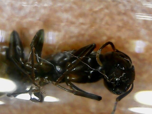 Ciao a tutti, mi è morta la regina di Camponotus, trovata un paio di settimane fa mentre tagliavo con la motosega un albero caduto, misura circa 9 mm, mantenuta in provetta ad una temperatura fissa di 26 gradi, temperamento veramente docile e tranquillo. La regina non è mai stata identificata con precisione, attendevo le prime operaie, data la possibilità ora di fare foto più precise ne pubblico qualcuna per l' identificazione. Ha deposto 4 uova abbastanza lunghe e strane, potreste spiegarmi il perchè ? Può essere che fosse una regina non feconda o addirittura già fondata che ho scovato smembrando l albero ? Possibili cause di morte ? Spero che qualcuno più esperto di me possa rispondermi