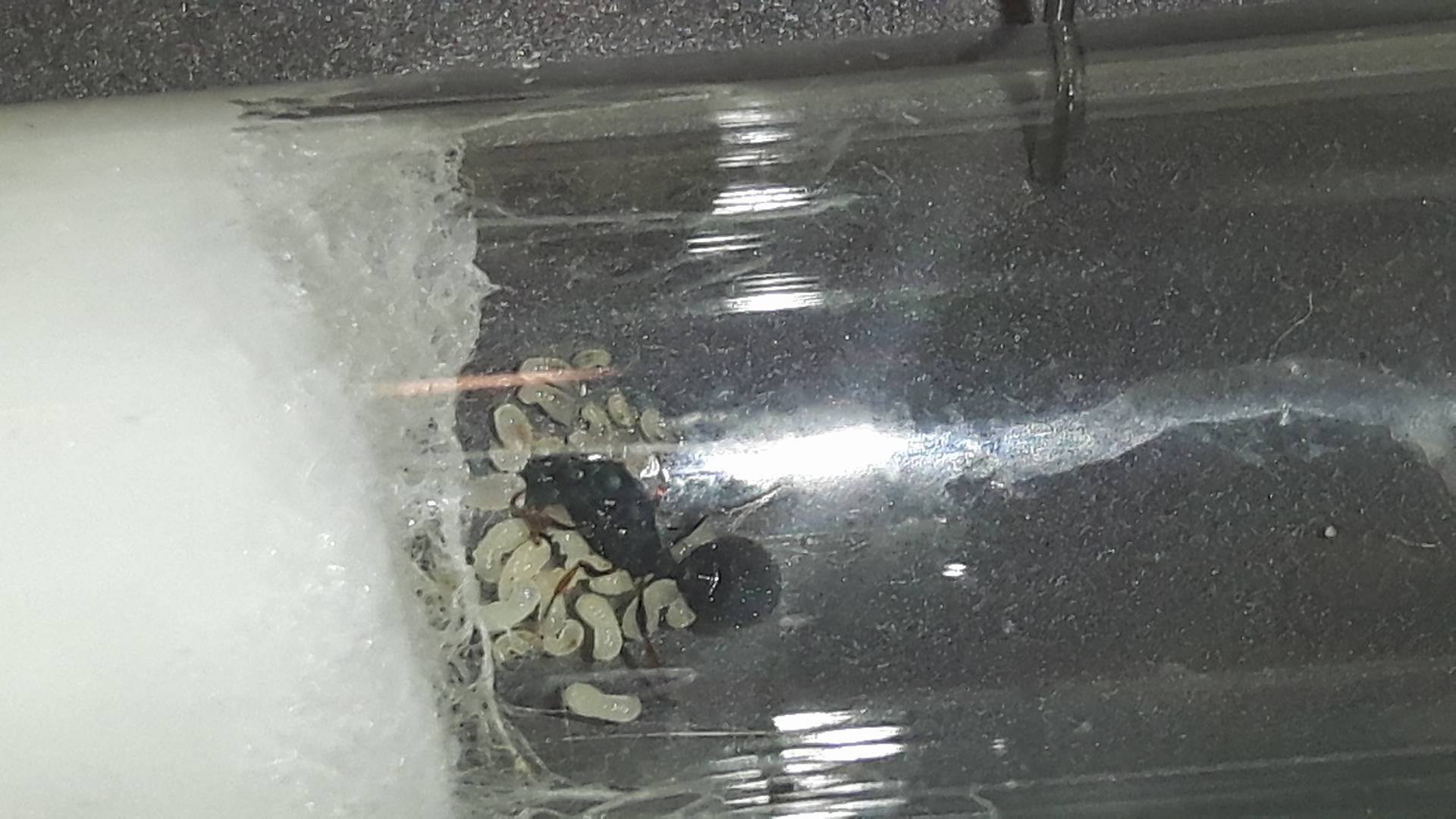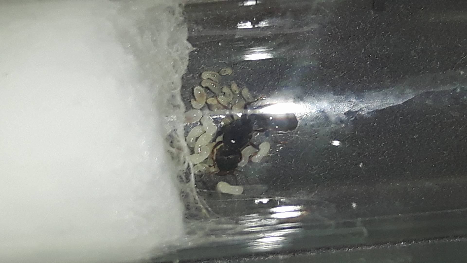 Piccolo aggiornamento, la covata è aumentata ancora a dismisura e si notano già delle belle larvette, i tempi di schiusa delle uova a 27 gradi sembrano di circa 6-7 giorni, ora vediamo al passaggio a pupa :-D