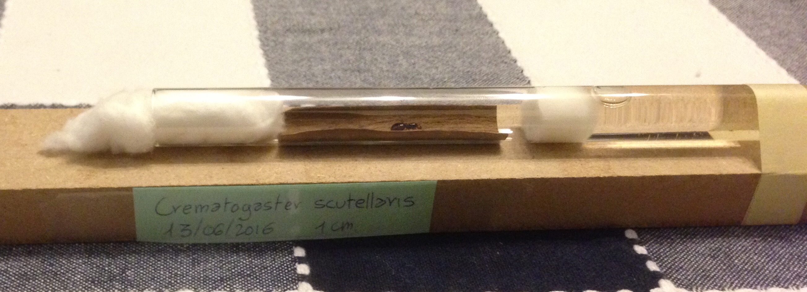 Non ho trovato perdite di emolinfa, e ho aggiunto della corteccia lavorata in modo da rendere la provetta il più accogliente possibile.