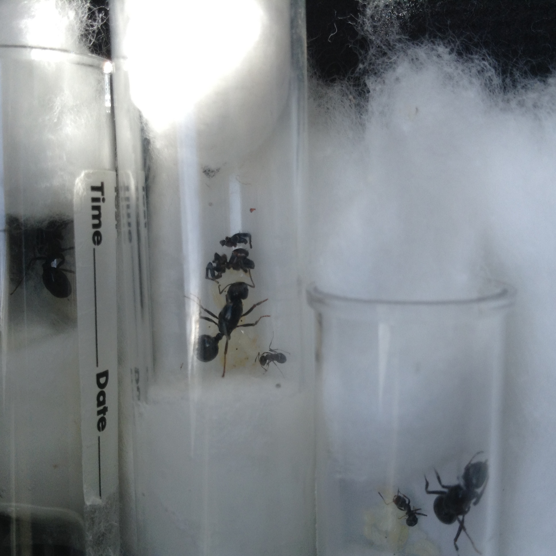 Nessun nuovo aggiornamento nella colonia (b) (numero di operaie fermo a 2)che sembra particolarmente attratta dalle fonti proteiche e prediligono particolarmente piccoli ragnetti e zanzare! I moscerini non vengono considerati più di tanto rispetto ad un'ottima zanzara fresca!