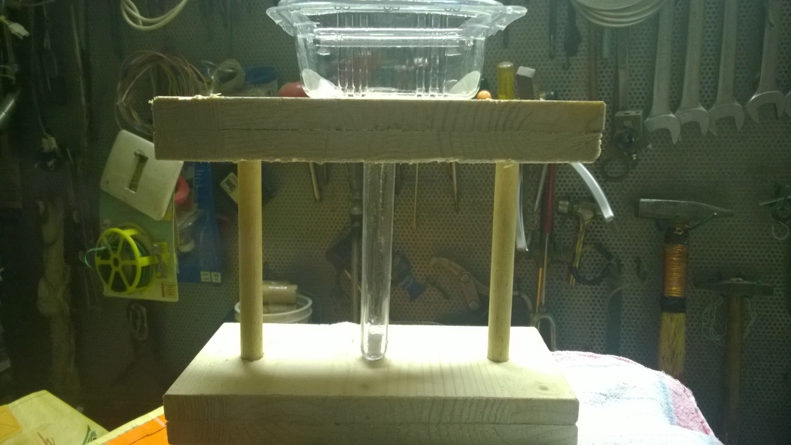 Per estrarre il blocco dalla provetta si potrebbe inserire una sorta di stoppino prima della colata con legato un piccolo pezzo di legno in fondo.