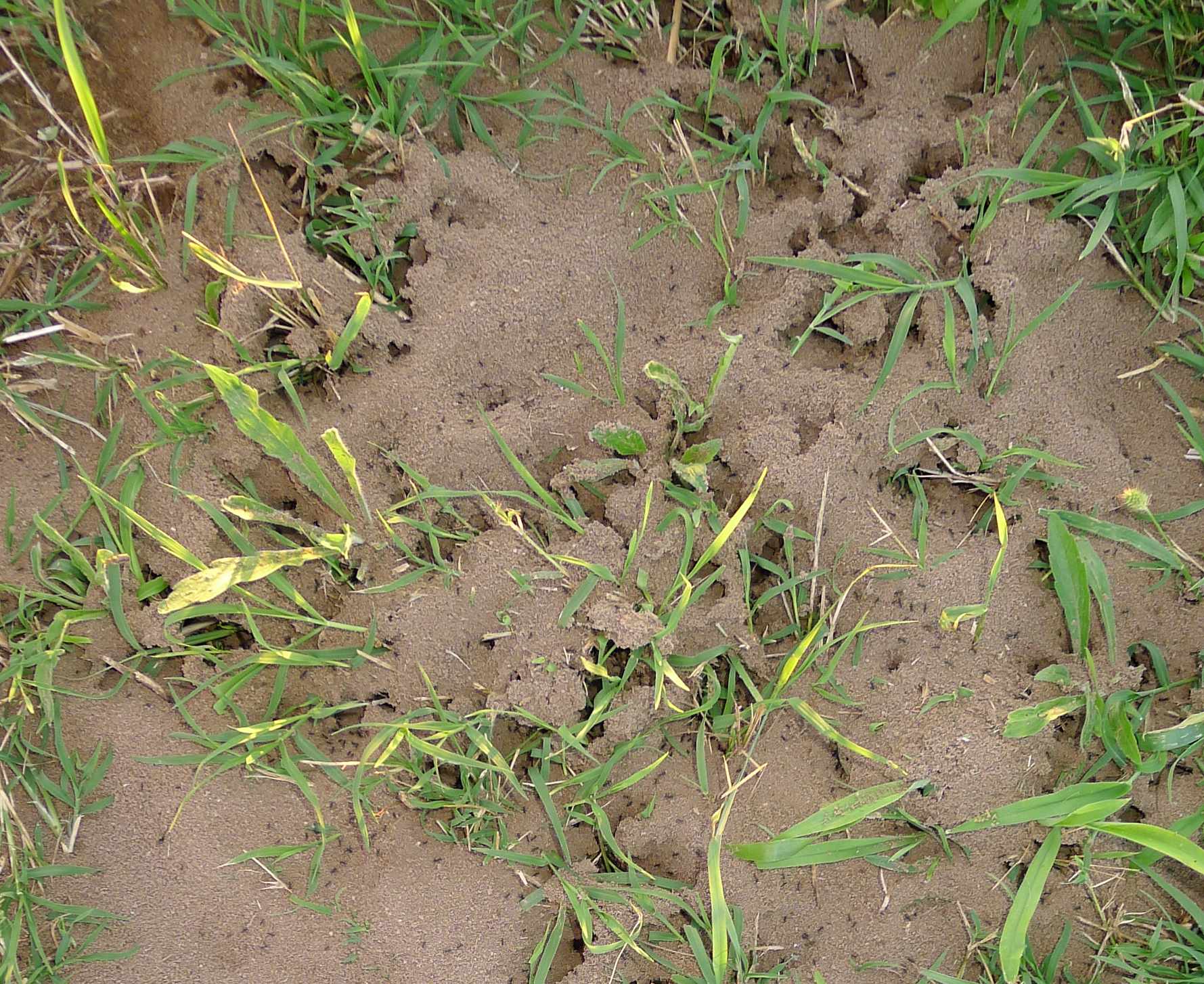 mi è parso che i nidi fossero estesi su un fronte di una quarantina di metri, con ampio via-vai di formiche nel territorio fra di essi. A margine di quest'area ho trovato nidietti che credo fossero di Pheidole pallidula, anche se non vi ho visto "testoni".