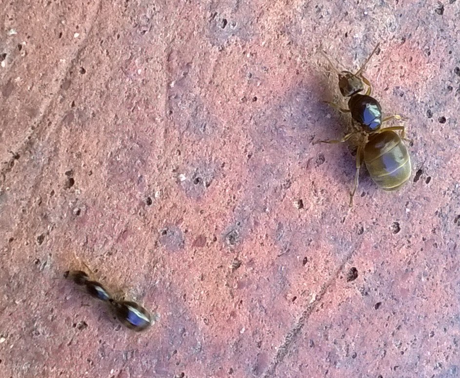 Oltre a maschi di Crematogaster (osservati in mezzo alle colonne di operaie) ed a piccoli maschietti neri e lucidi, c'erano questi due tipi di regine (credo siano le stesse che ho già visto altre volte in cortile negli ultimi tempi)