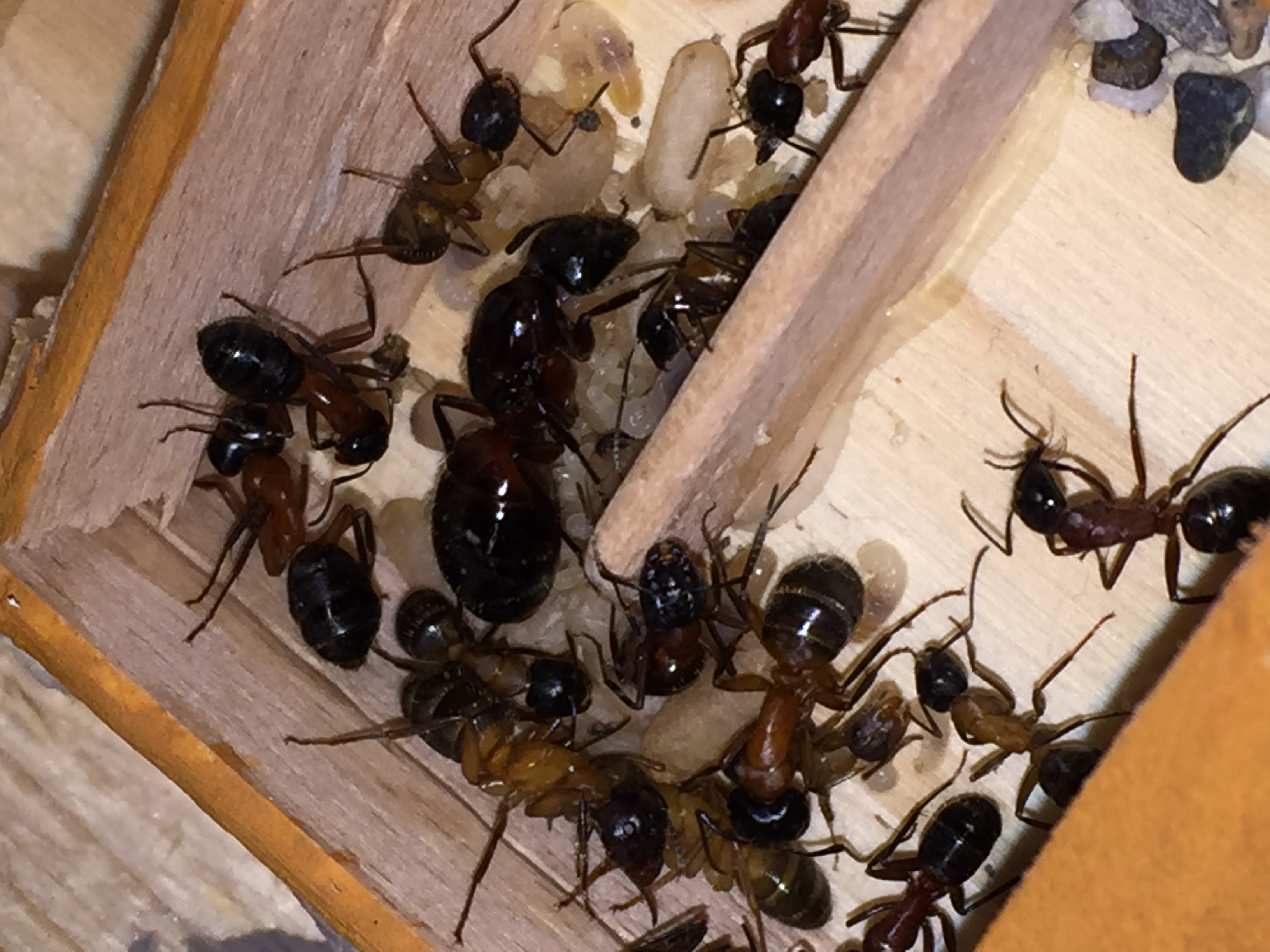 Particolare aggiornamento per la colonia beta: data la notevole dimensione delle nuove nate e la presenza di una discreta covata ho trasferito ieri la colonia in un nido di accrescimento orizzontale, in legno ovviamente, 12x15 cm (teoricamente è fatto in modo da poterlo mettere in verticale anche).