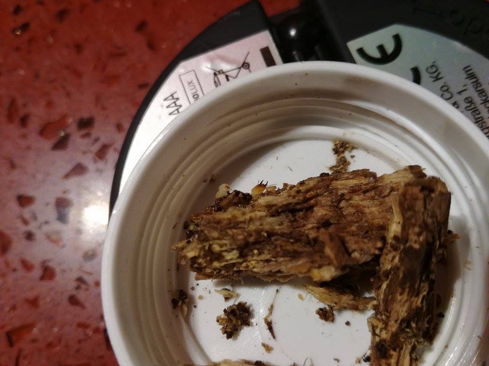 Per quanto riguarda le kalotermes ho 1 riproduttore primario (molto probabilmente la regina, vista la relativa fisogastria e del quale mi sono accorto solo a casa aprendo un pezzo di corteccia; altrimenti non l'avrei certo prelevato) che sta nel suo legno con parte degli esemplari; ma anche isolato vari campioni per sviluppare reali di complemento dalle ninfe lavoratrici di varie taglie (in Kalotermes gli adulti sterili sono solo soldati, non esiste infatti una casta degli operai).