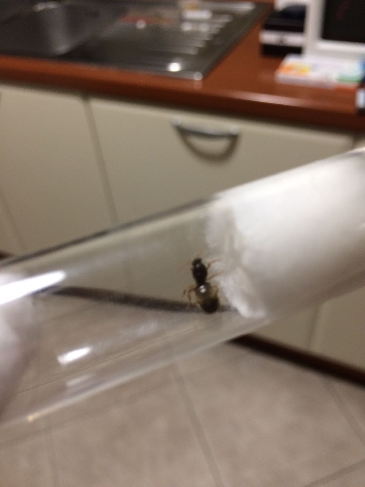 Sera ragazzii! Sono tornato a Roma questa sera ed ho ritrovato la regina con il gastro un bel pò più grande è normale? Buon segno o cattivo? Ho fatto il cambio di provetta come consigliato e ho fatto un bell serbatoio senza bolle d'aria e 2,5 cm di spazio per la regina. Ora c'è l ho messa da circa 2-3 orette e sta attaccata sempre al cotone che chiude la provetta quindi quello asciutto è normale? Grazie