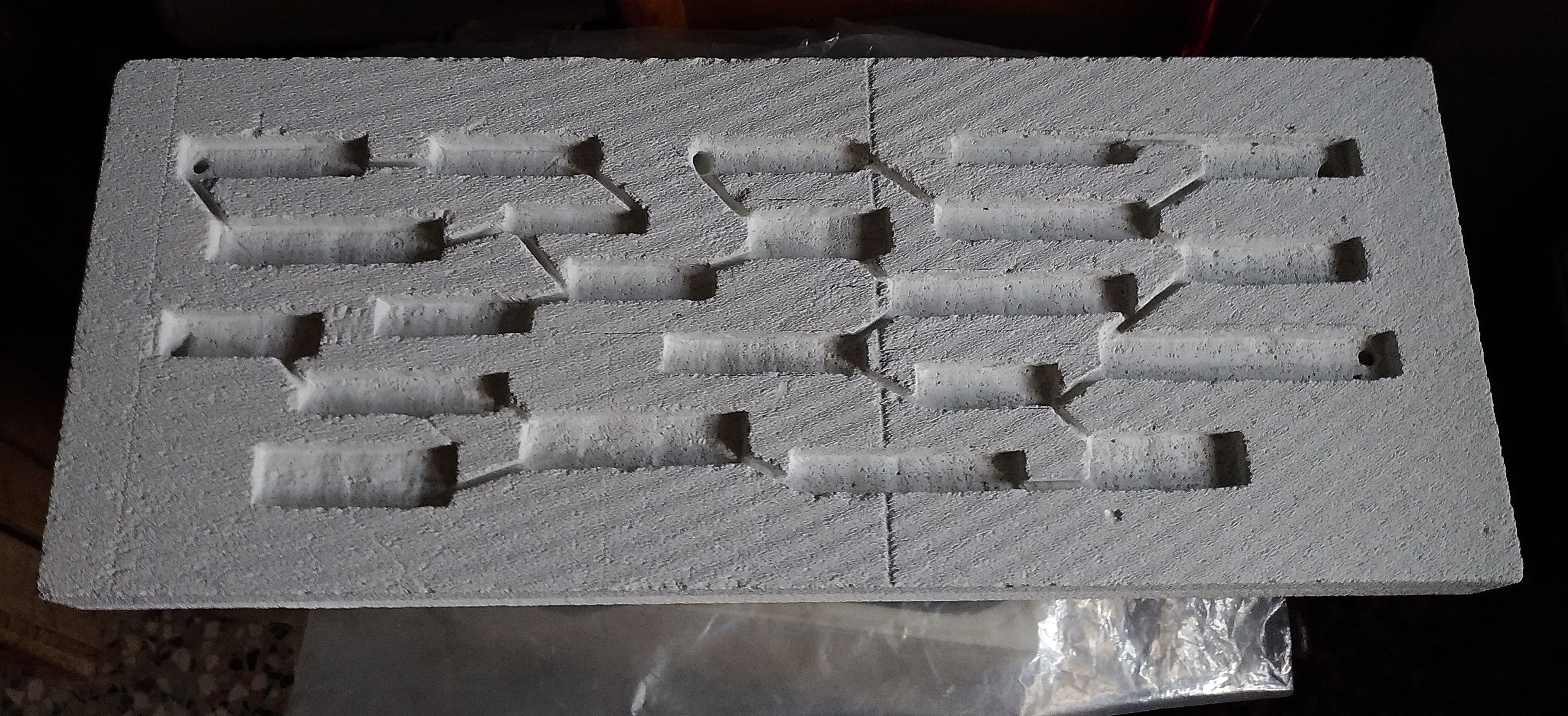 Il blocco di 60X25 cm (circa) non è stato lavorato in maniera da sfruttare il 100% dello spazio a disposizione, sia per una questione di tempo sia per il numero delle operaie non così elevato (saranno 800-1000). Volevo infine colorare il tutto con una vernice spray color mattone a base d'acqua per il 90%.