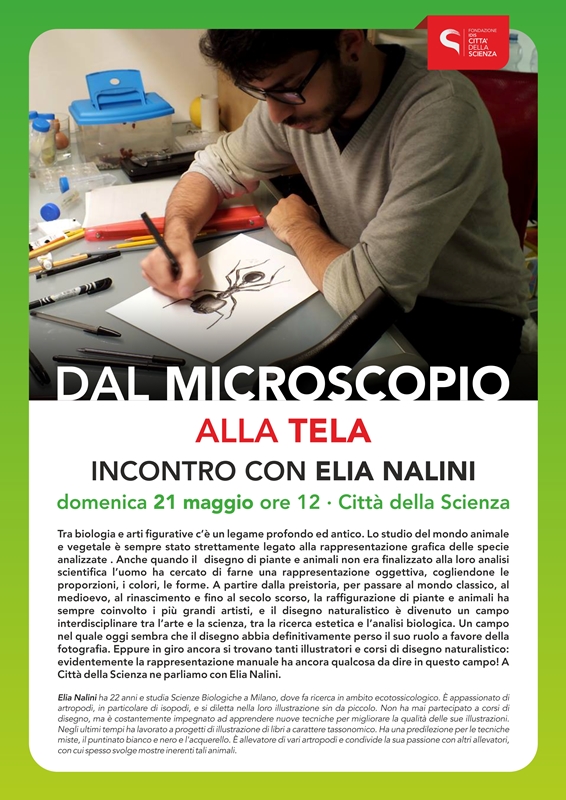 Salve a tutti, domenica 21 Maggio, in occasione delle giornate della Biodiversità, Elia sarà qui a Napoli a Città della Scienza a parlare delle sue illustrazioni e del suo rapporto con gli artropodi!