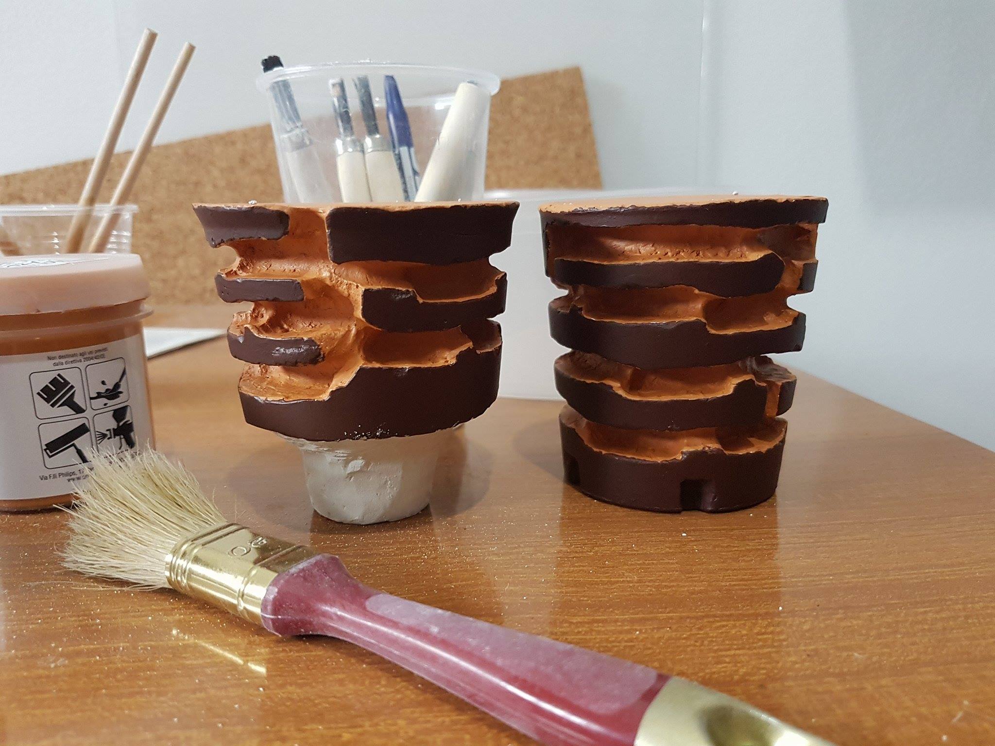 Questi esempi di formicai sono davvero ottimi, meglio il gesso al gasbeton dato che il secondo presenta delle porosità dovo possono cadere le uova piccole di questo genere. Potresti usare l'esempio di destra dell'ultima foto e fare un forellino alla base in corrispondenza di quegli spazi quadrati per dare una leggera umidificazione; non è strettamente necessaria però per queste formiche, e non deve essere eccessiva altrimenti si ammorbidisce il gesso, ma comunque basta fonte d'acqua in arena (tappo con un po' di cotone umido).