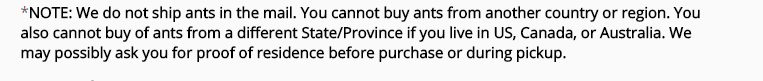 Ma poi scusatemi... lo scopo che trascende quello commerciale dietro al creare dei punti di vendita di formiche della "stessa regione" dell'acquirente quale sarebbe? L'acquirente le formiche della "sua regione" può benissimo raccogliersele da solo, se ha un minimo di cognizione della cosa per non farlo diventare un "vendere ghiaccio agli Eschimesi".