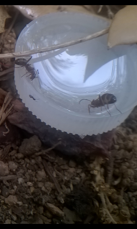 ..visto che potrei avere una regina di F. clara o di F. cunicolaria ho pensato di osservare meglio le colonie di casa..mi sembra che alcune abbiano il torace"più rosso", ma ovviamente non so se sia significativo. Ad ogni modo pensando di mostrarle a chi è più competente ho offerto un po' di acqua e zucchero alle più rossicce..solo che sono comparse queste!
