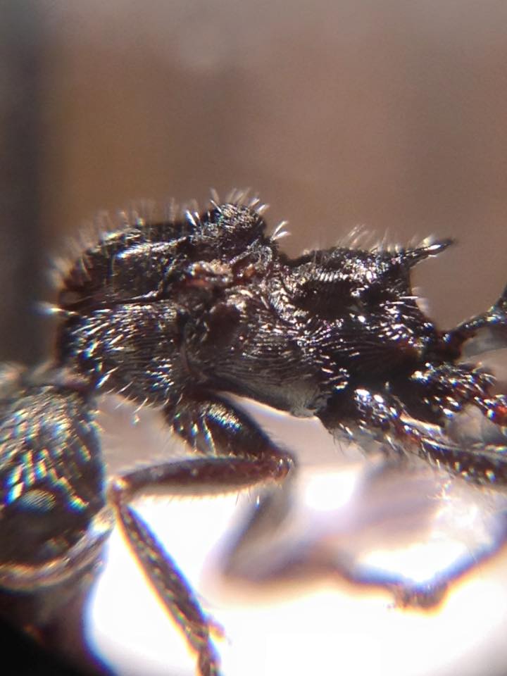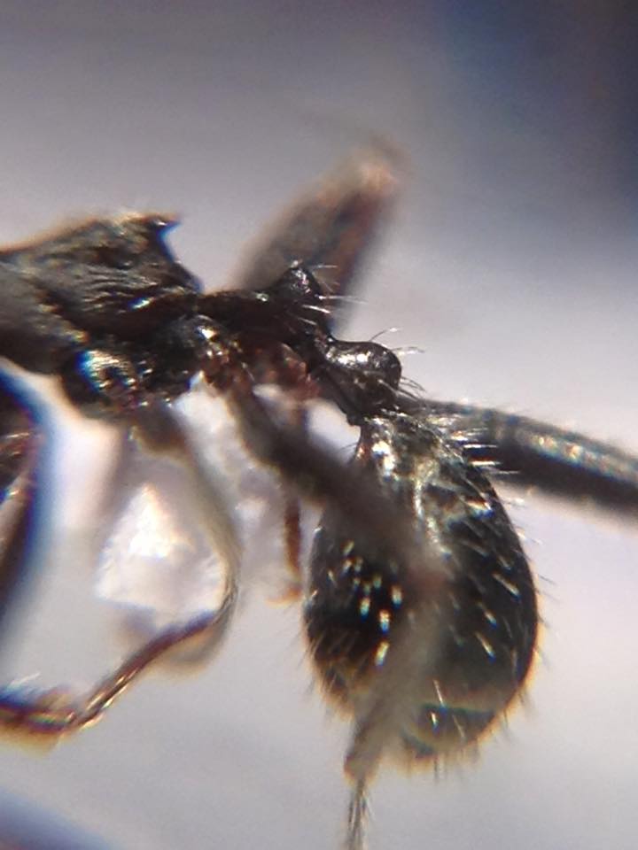 ALTRI DETTAGLI: Colore nero, in giardino le si trovano soltanto solitarie alla ricerca di cibo, vicino all'entrata del nido solo pochi esemplari, mai più di 4/5 alla volta, nei pressi del nido si trovano spesso detriti di vario genere, come operaie morte, sassolini, scarti di altri insetti, etc...
