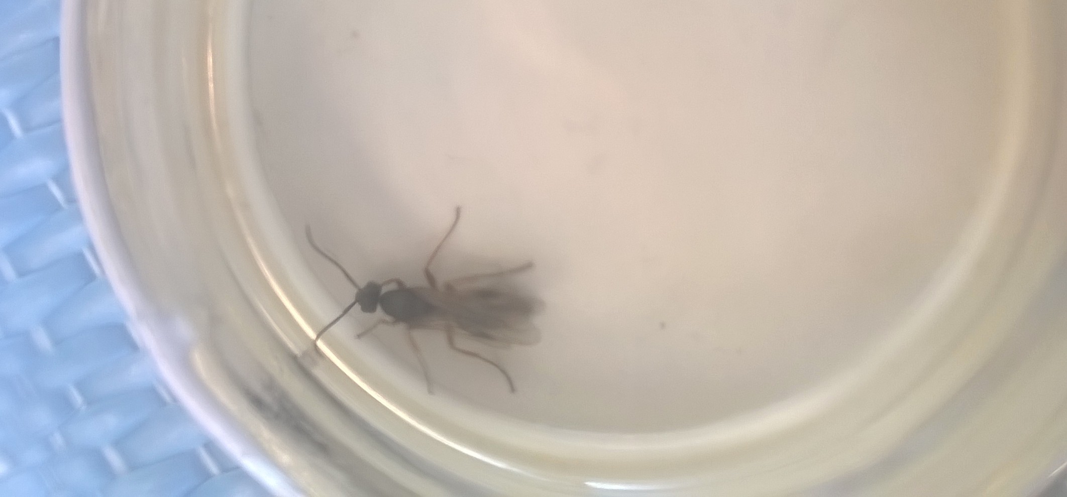 Misura a occhiometro 6-8mm (non sono molto precisa con le stime a occhio ma il moto perpetuo di questa bestia non aiuta l'uso dei miei potenti mezzi), ha belle zampe arancioni, grandi occhi sporgenti e antenne a V vagamente curvate (non piegate) in fuori..non sembra tentare il volo..riesco anche a vedere a occhio nudo che l'addome si conclude con una piccola doppia punta..mi hanno fatto pensare alle foto dei genitali di formica maschio che ho visto qui sul forum..e proprio ora mi sembra quasi di notare un peziolo..mi farà ammattire! Che bestia é?