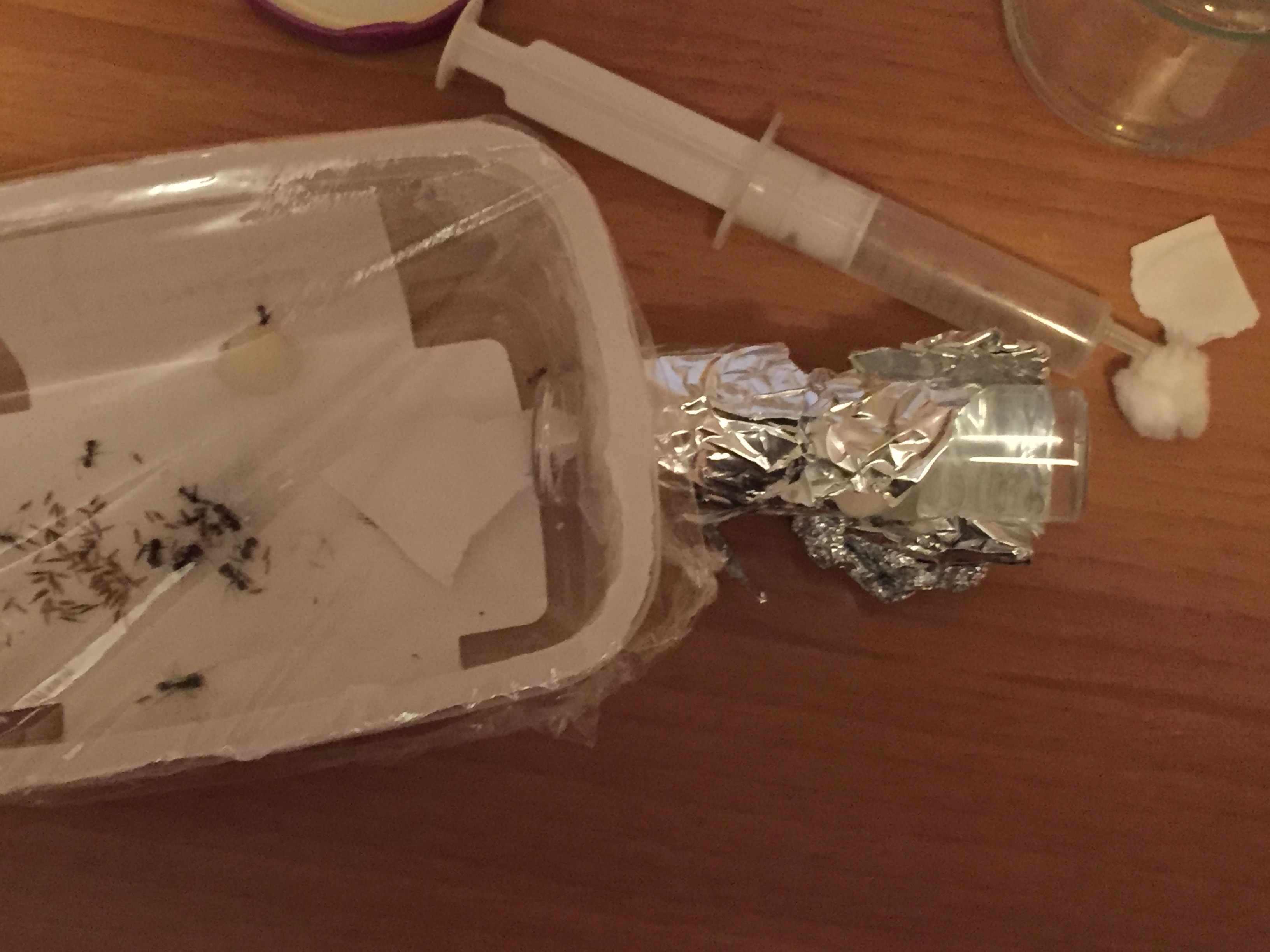 Vi informo con estremo piacere che la mia "colonietta" è stata trasferita con successo in una provetta con arena annessa. Ho eseguito anche il trattamento con il limone a tutte le operaie. Regina inclusa!