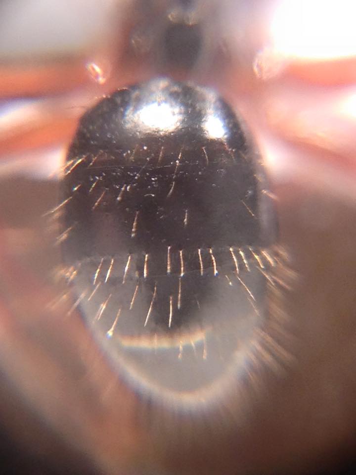 Faccio notare un interessante carattere delle regine che è assente nelle operaie: le mandibole e il margine anteriore del clipeo vistosamente arancioni, con solo il margine masticatorio nero. Le operaie hanno invece le mandibole scure.