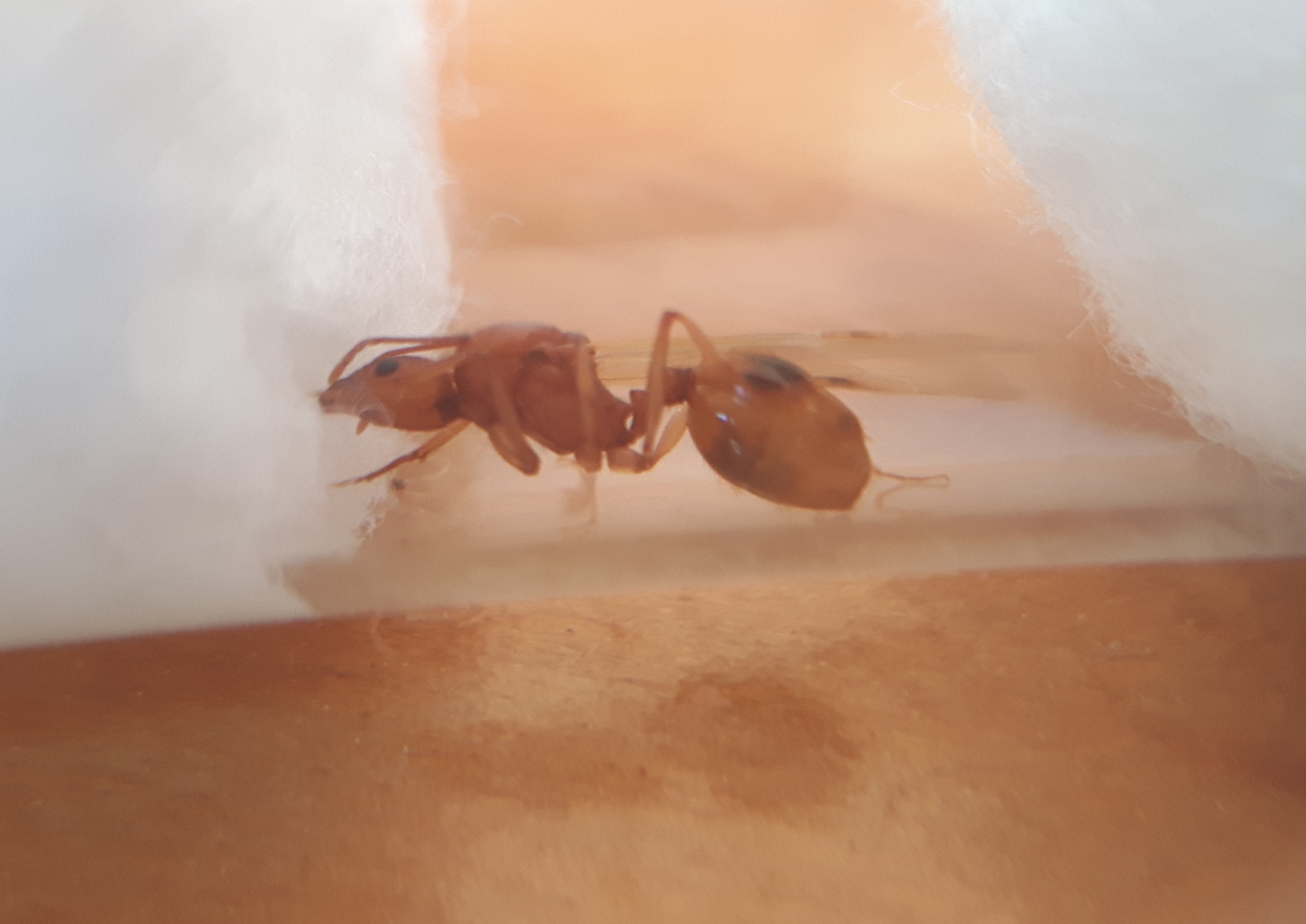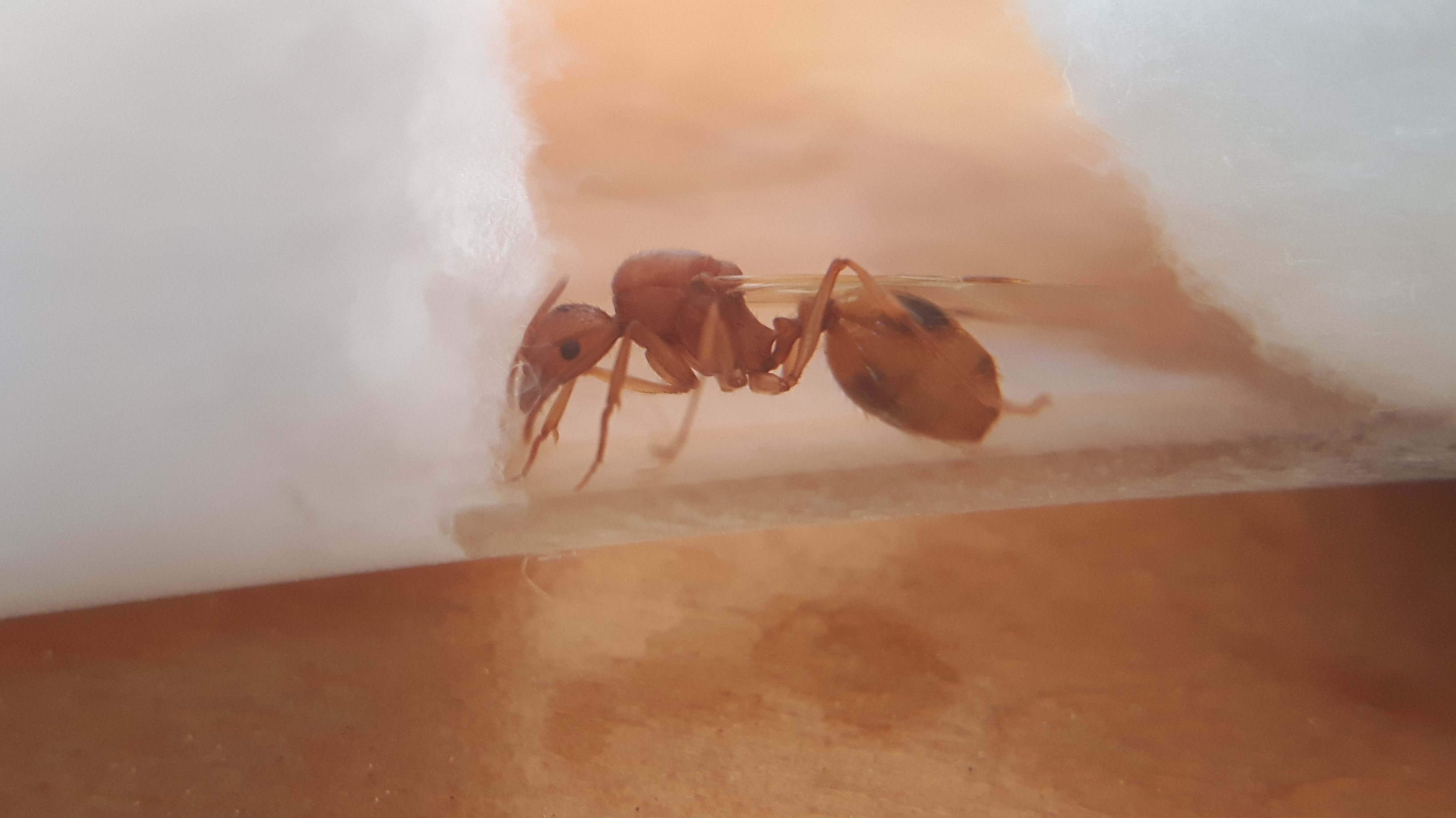 1. Questa credo sia una Aphaenogaster sp, ma devo confessare di non averne mai viste di simili, lunghezza intorno ai 9mm e colore marroncino chiaro tendente all'arancione, opaco: