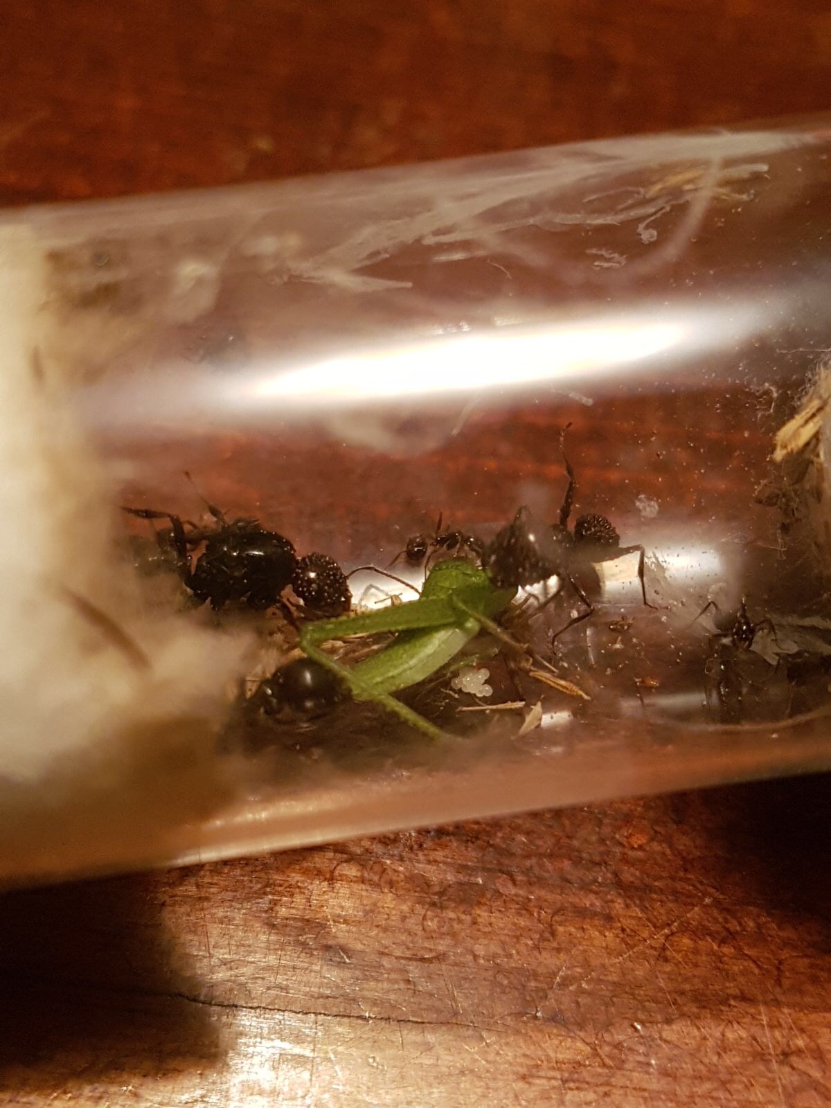 Al mio ritorno gli ho anche somministrato una cavalletta morta perché erano due mesi che non mangiavano proteine.