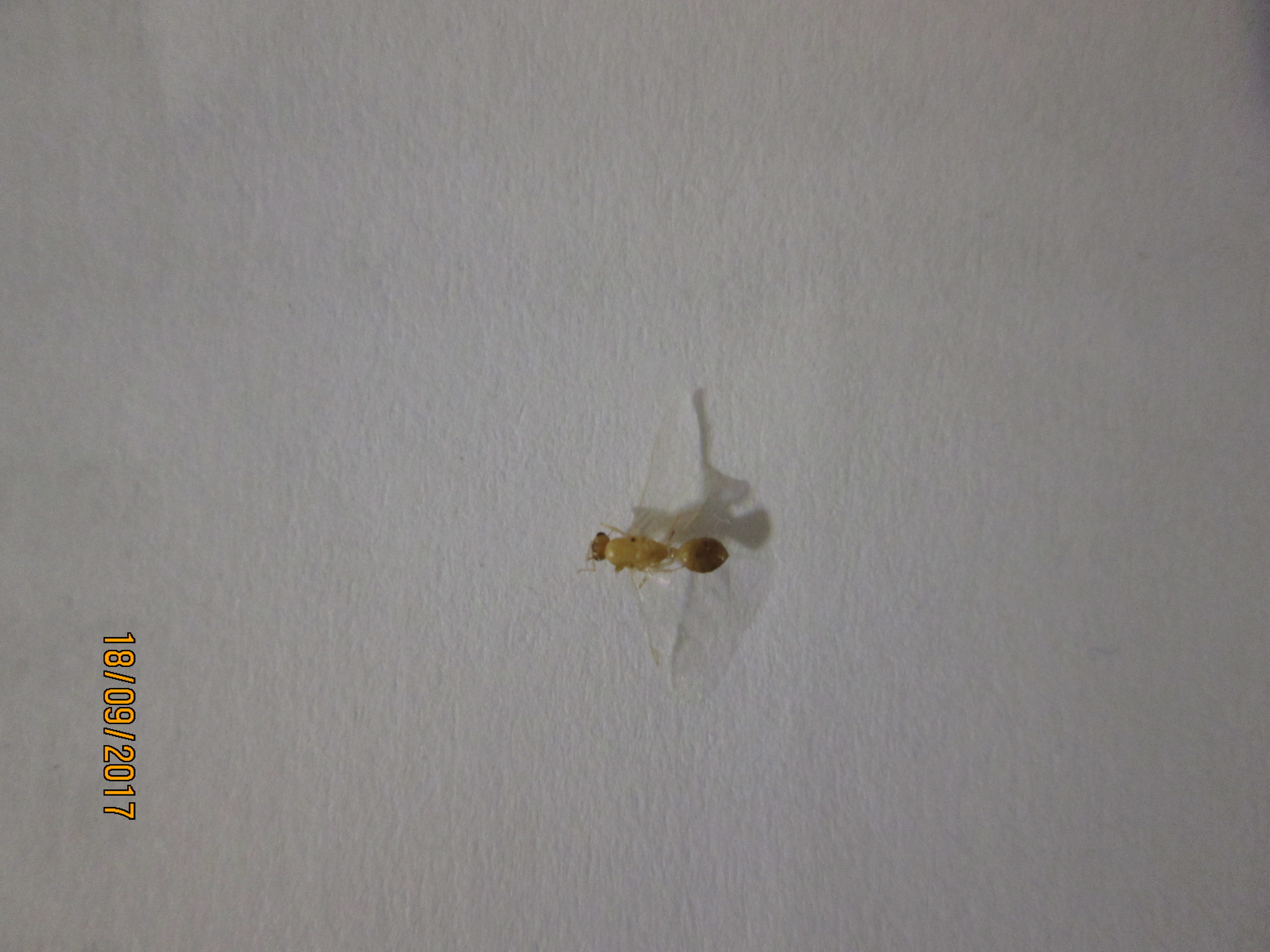Era nel lampadario da meno di una settimana/una settimana e mezza, a questo punto credo sia un maschio di Lasius flavus visto che proprio nel mio giardino vi è stata una sciamatura di notevoli dimensioni non molto tempo fa.