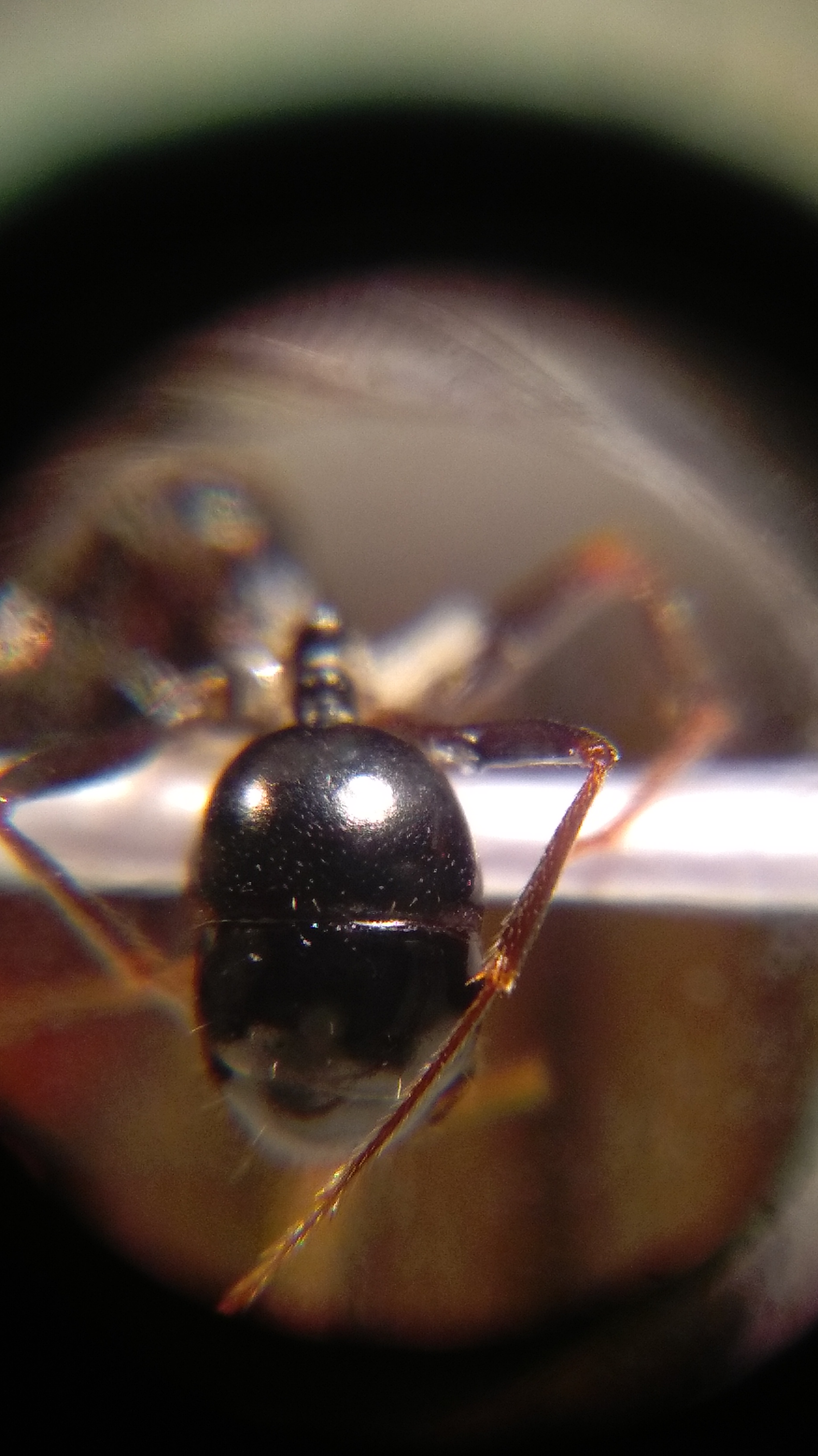 Per la Pheidole: il colore è, come quasi sempre nel genere, irrilevante. Un colore molto chiaro però è un altro indizio di un posto molto assolato e poco frondoso, dato che le variazioni chiaro/scure intraspecifiche nelle Pheidole spesso dipendono dall'esposizione al sole. Si tratta chiaramente di una Pheidole del complesso pallidula. Solo che ora dovrebbe venire Seifert a dirmi se secondo lui si tratta di P. balcanica, P. koshewnikovi o altro...