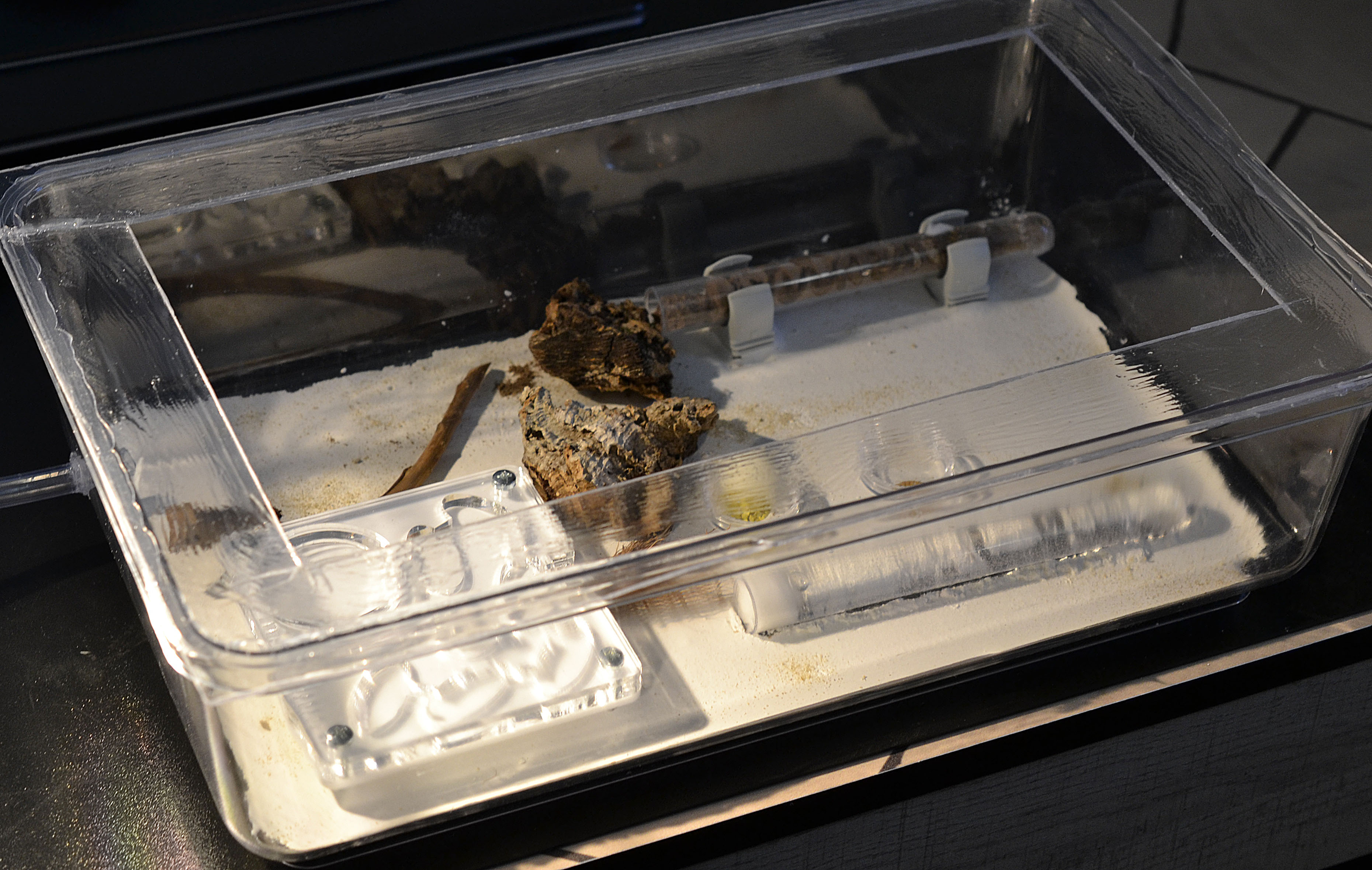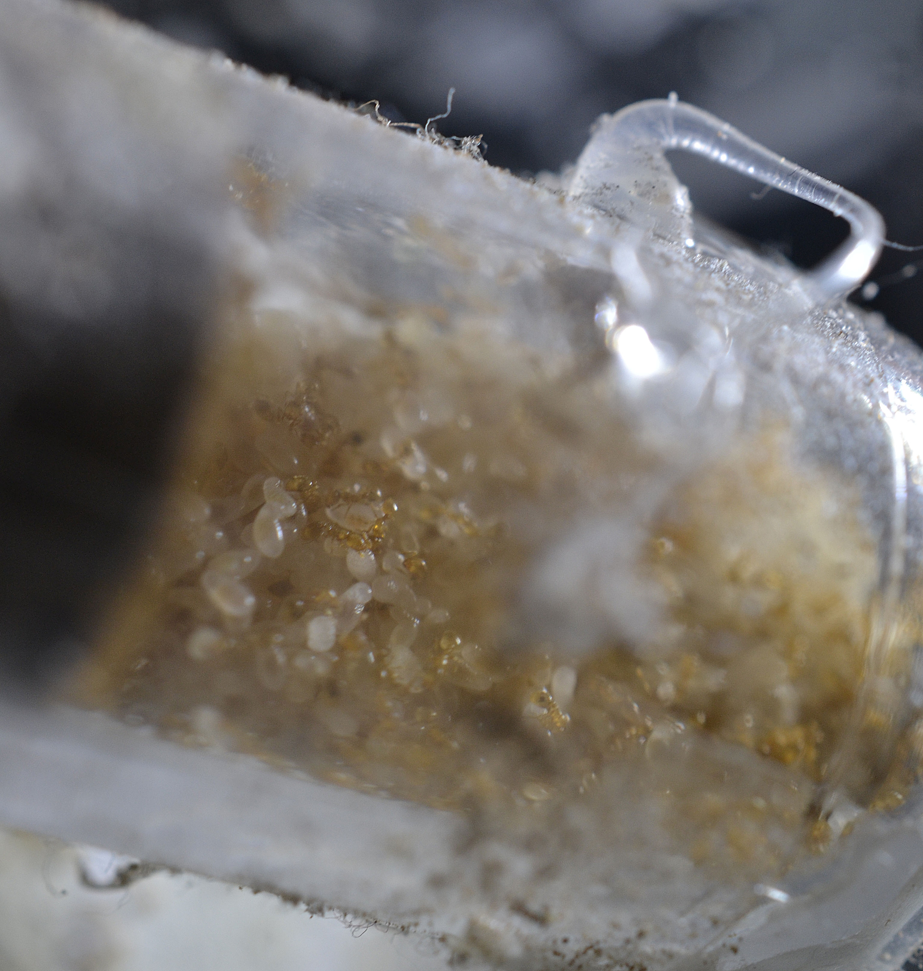 Ciao! Ahimè nessuna novità rilevante da riportare. Dall'ultimo aggiornamento la provetta contenente il nido in gesso è stata spostata nella nuova arena per il trasferimento. Nonostante il nuovo nido sia sempre umido mentre il vecchio completamente al secco , la colonia è restia allo spostamento (per l'esattezza stanno utilizzando le camere del nuovo nido come deposito rifiuti