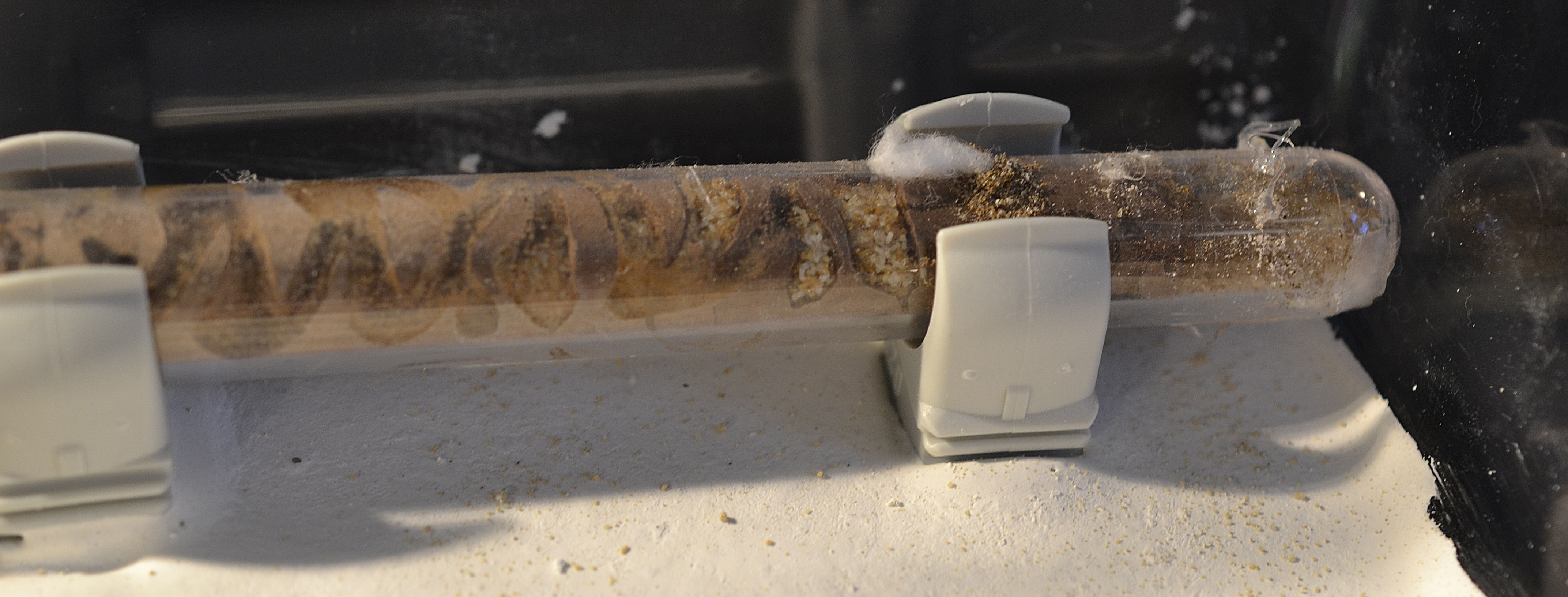 P.s. come si può notare, le foto della provetta/nido non sono bellissime ma purtroppo da quella posizione faccio fatica a farne di decenti (altro motivo per trasferirle). Dal vivo la popolazione/covata risulta decisamente più abbondante, soprattutto sul fondo della provetta. Bisogna infine tenere conto dei numerosi tunnel più 'nascosti' scavati dalle operaie stesse, che potrebbero contenere altra parte della colonia.