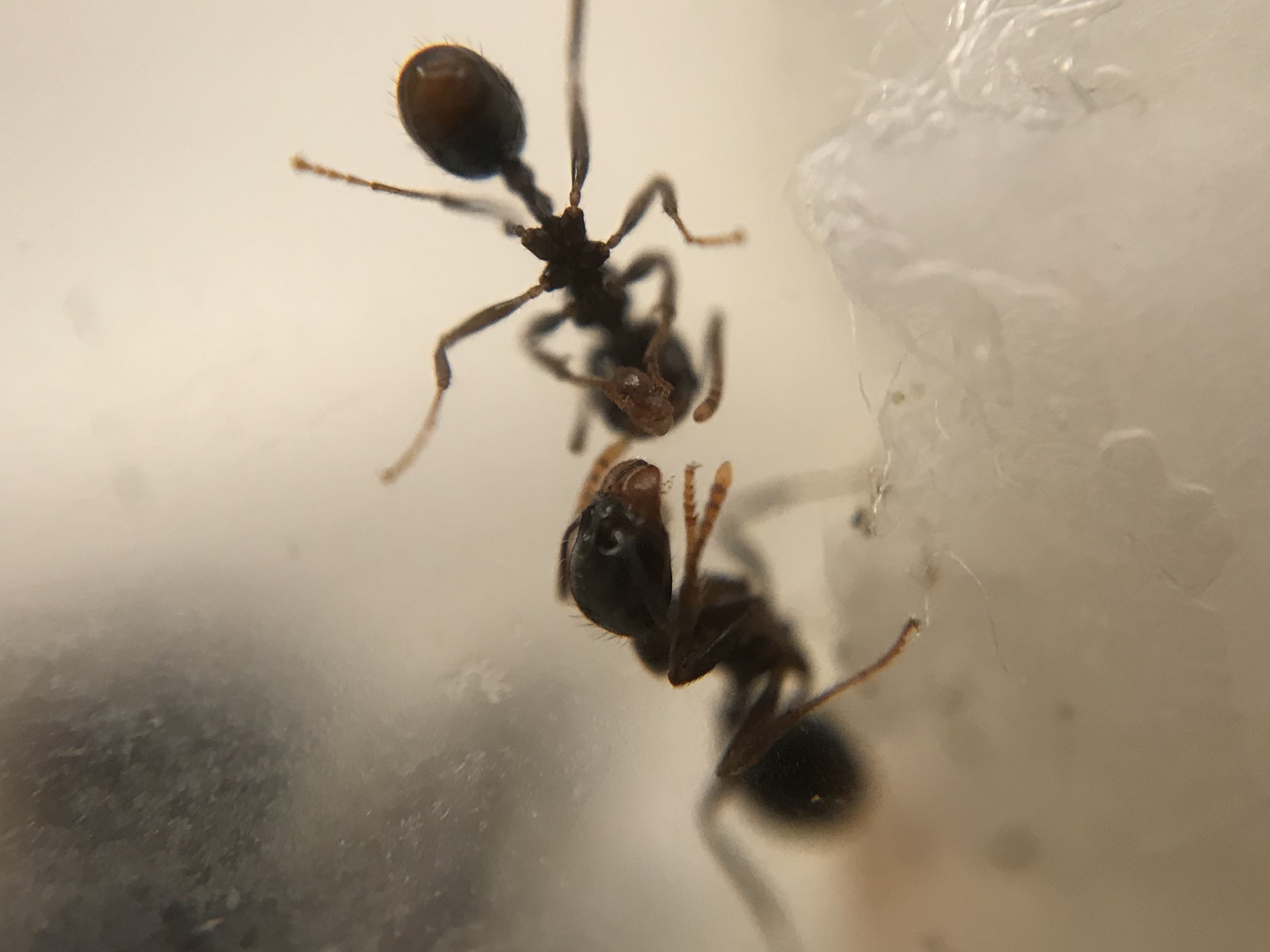 La Messor sp. ha generato due esemplari leggermente più grossi, ci hanno impiegato molto di più a sviluppare tutte le fasi della crescita (sono state anche superate da altre operaie), compresa la pigmentazione.