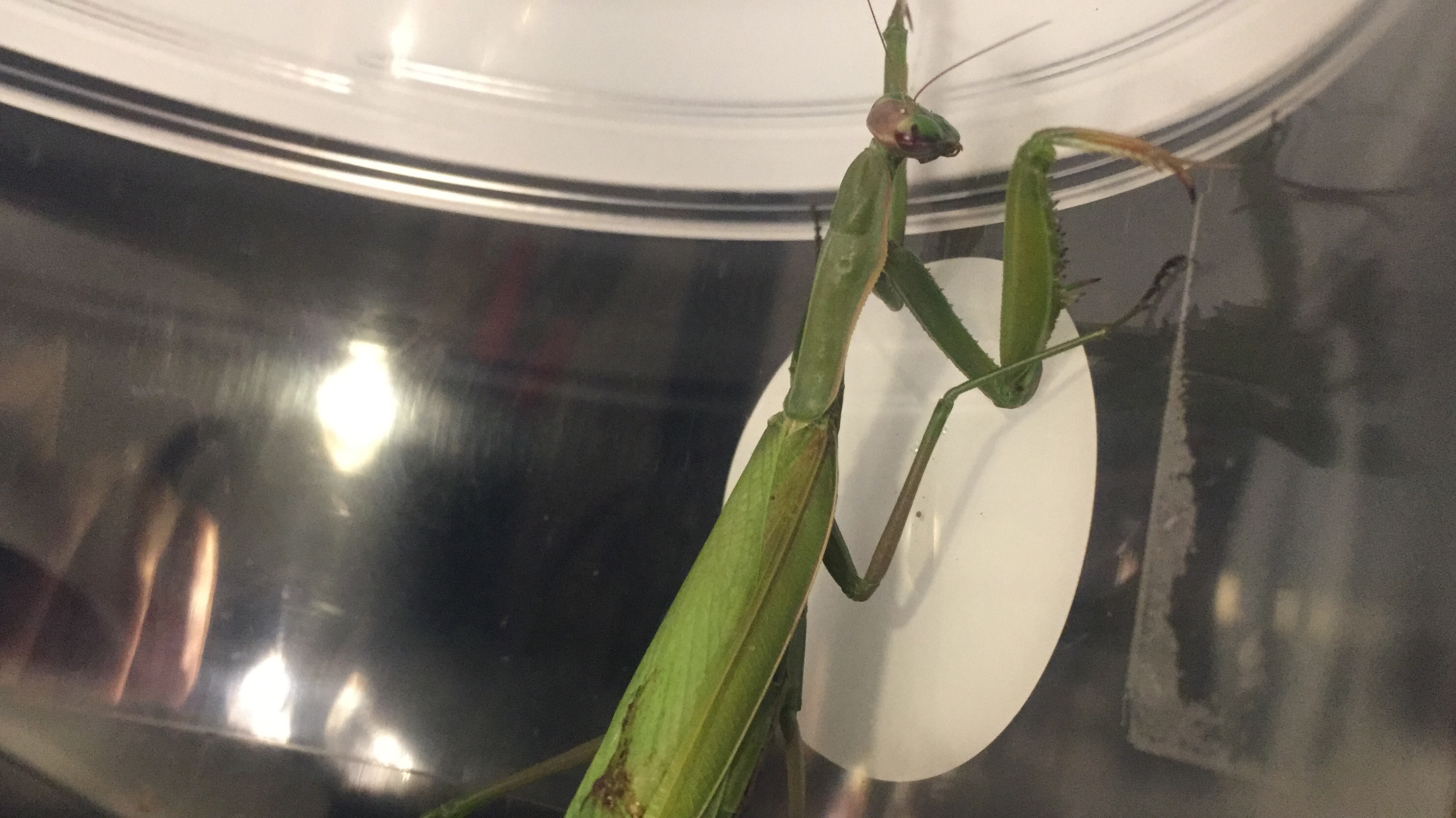 E' il caso di farla mangiare bene comunque, perché stimola l'eventuale deposizione. Mettile a disposizione un ramo, delle foglie, un sasso su cui possa deporre la sua ooteca.
