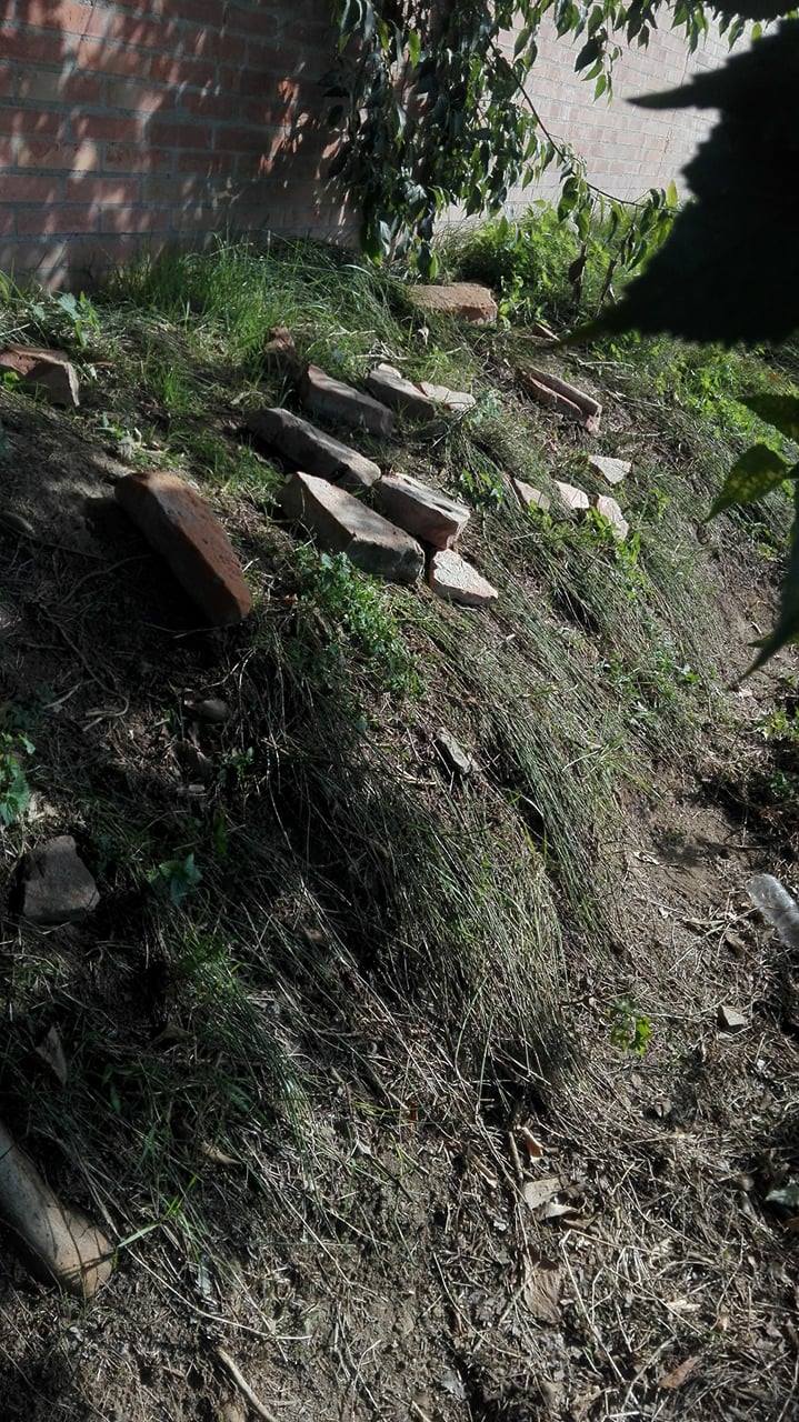 Ho deciso di mettere la data del primo ritrovamento di 3 operaie di questa specie, e da qui la raccolta di campioni per MattiaMen. Immaginatevi la scena, alzo una pietra a casaccio e me le ritrovo, per poi scoprire più avanti che tutti i mattoni vengono usati come sito di caccia dalla colonia (quindi molto ma molto numerosa... si estende per circa 3 metri, considerando che trovo le operaie sotto tutti i mattoni di quest'area)! Ecco qui di seguito l'ambiente di cui parlo:
