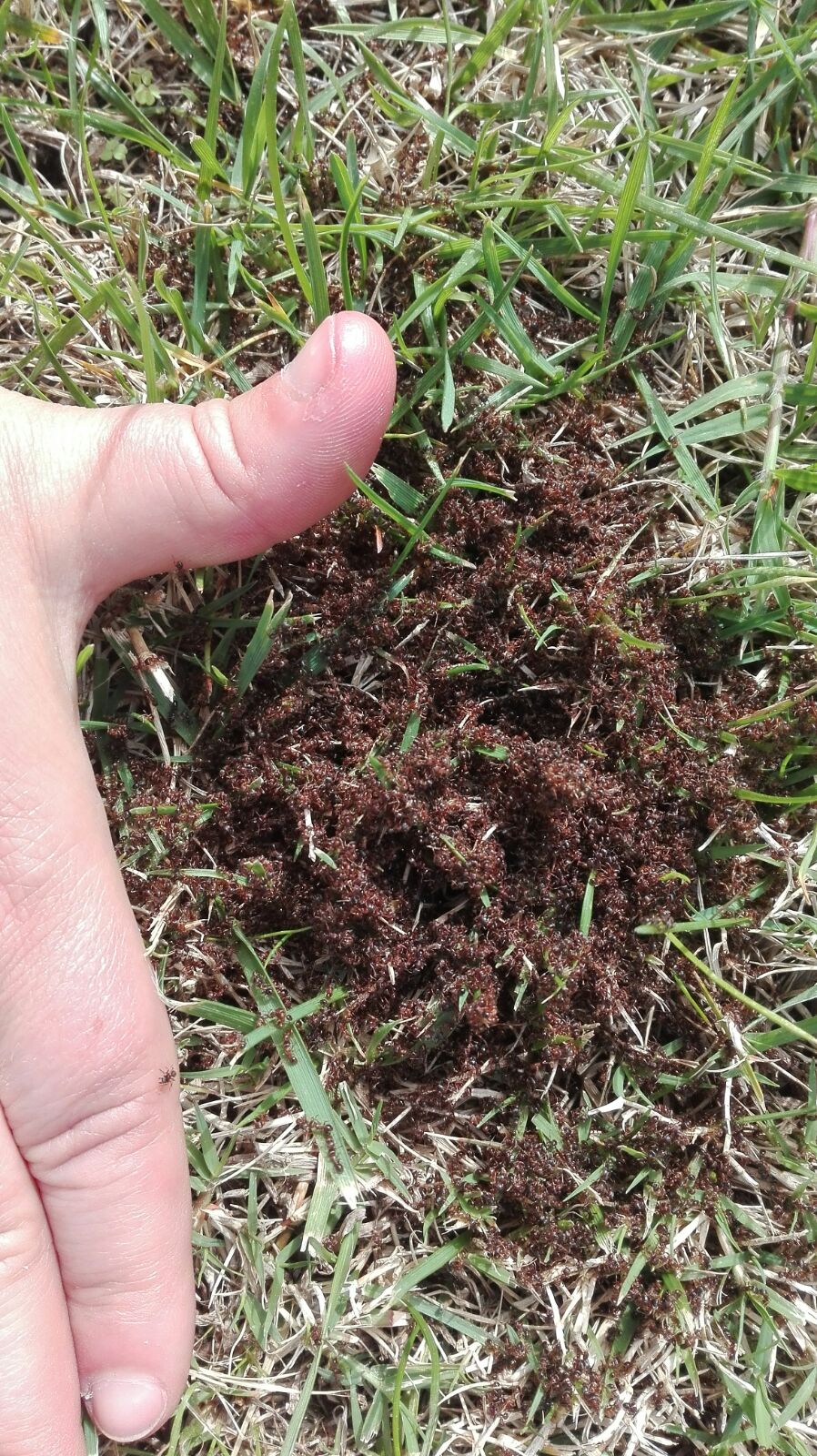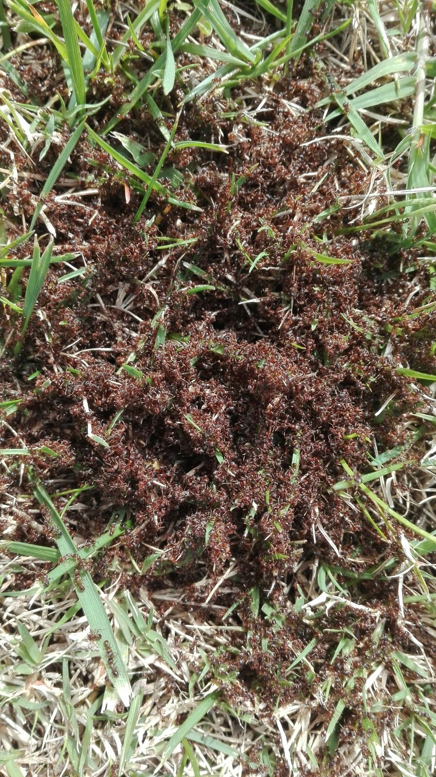 Oggi, provincia di Cagliari intorno alle 17, con clima umido e qualche goccerella di pioggia..mia sorella trova in giardino un fondo di caffè..ma non è caffè, é un ammasso di formiche (credo Lasius sp) molto disorientate e apparentemente in lotta..non abbiamo trovato entrate, ma poco dopo si è formata una fila e un nuovo "ingorgo"..abbiamo notato che alcune sembravano trascinare le compagne, altre sembravano combattere (ne abbiamo notato due che si agganciavano reciprocamente con le mandibole)..provavano relativo interesse per fonti do cibo..non c'erano alati, uova o larve, né formiche di altre specie..