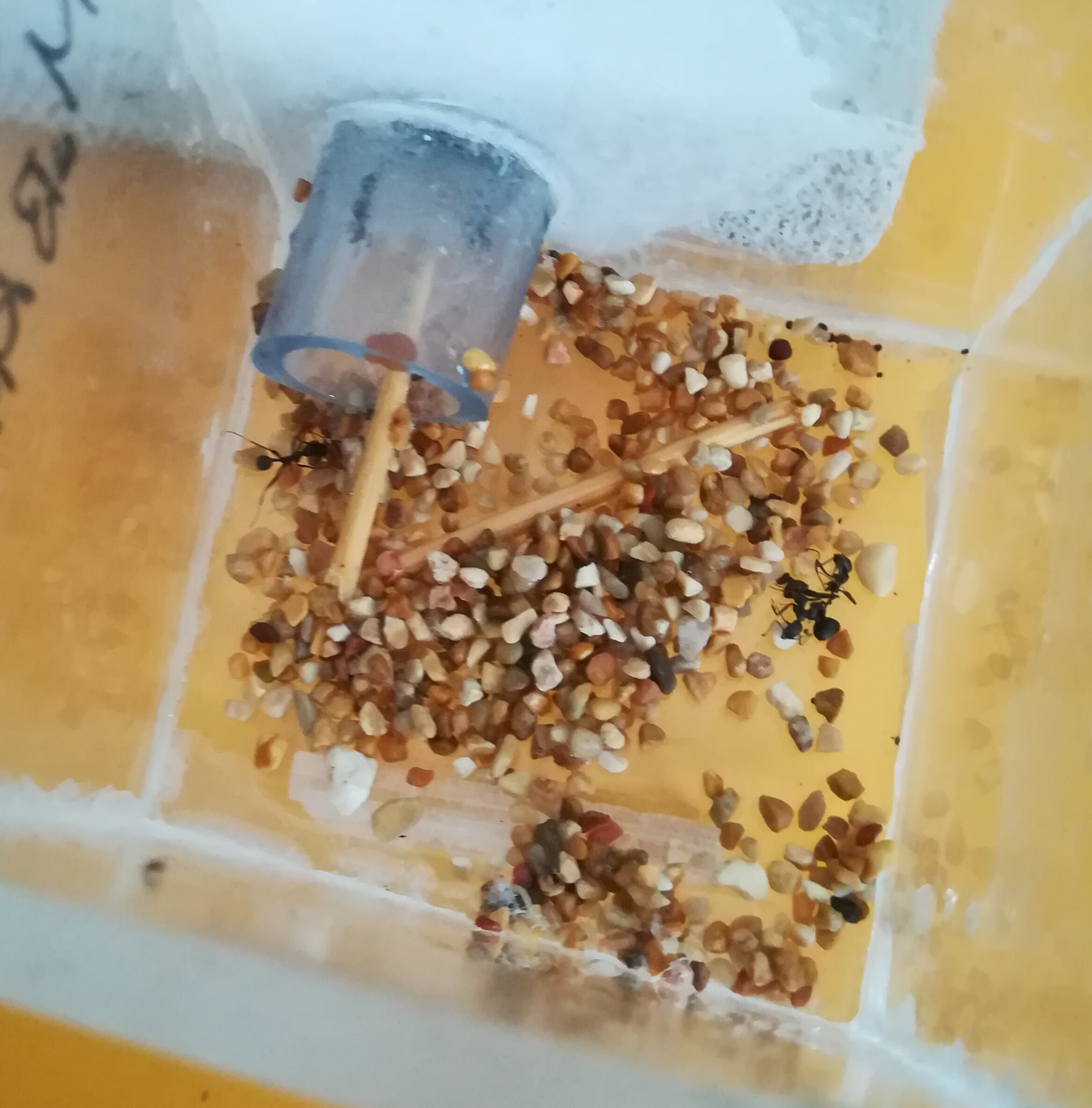 Oggi ho affrontato una fuga di circa 5 operaie che si erano messe sotto l'arena delle Tetramorium. Devo mettere una retina. Mancherò 2 settimane e quindi lascerò abbondante miele.