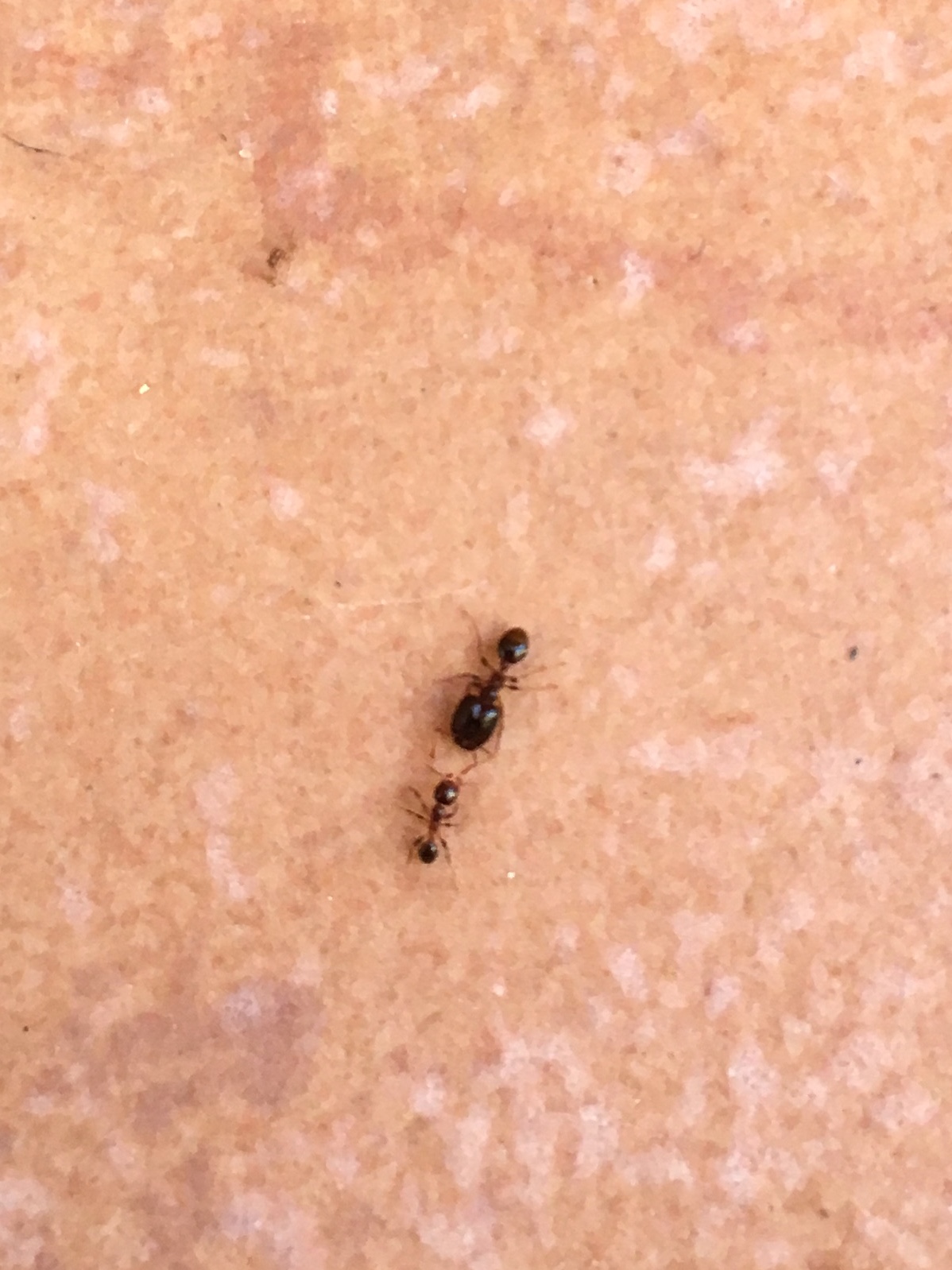 Chiedo scusa, so che sto esagerando con gli ID ma sono pieno di dubbi. Questa volta si tratta di due operaie appartenenti a caste differenti, lunghe poche millimetri, scusate ma non riesco a darvi la misura precisa.