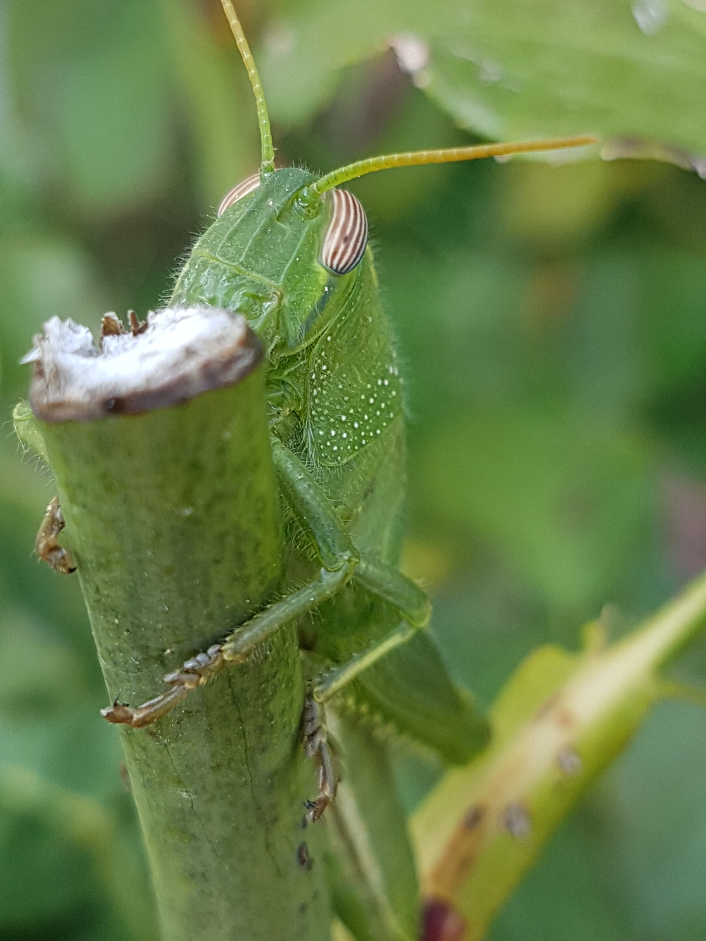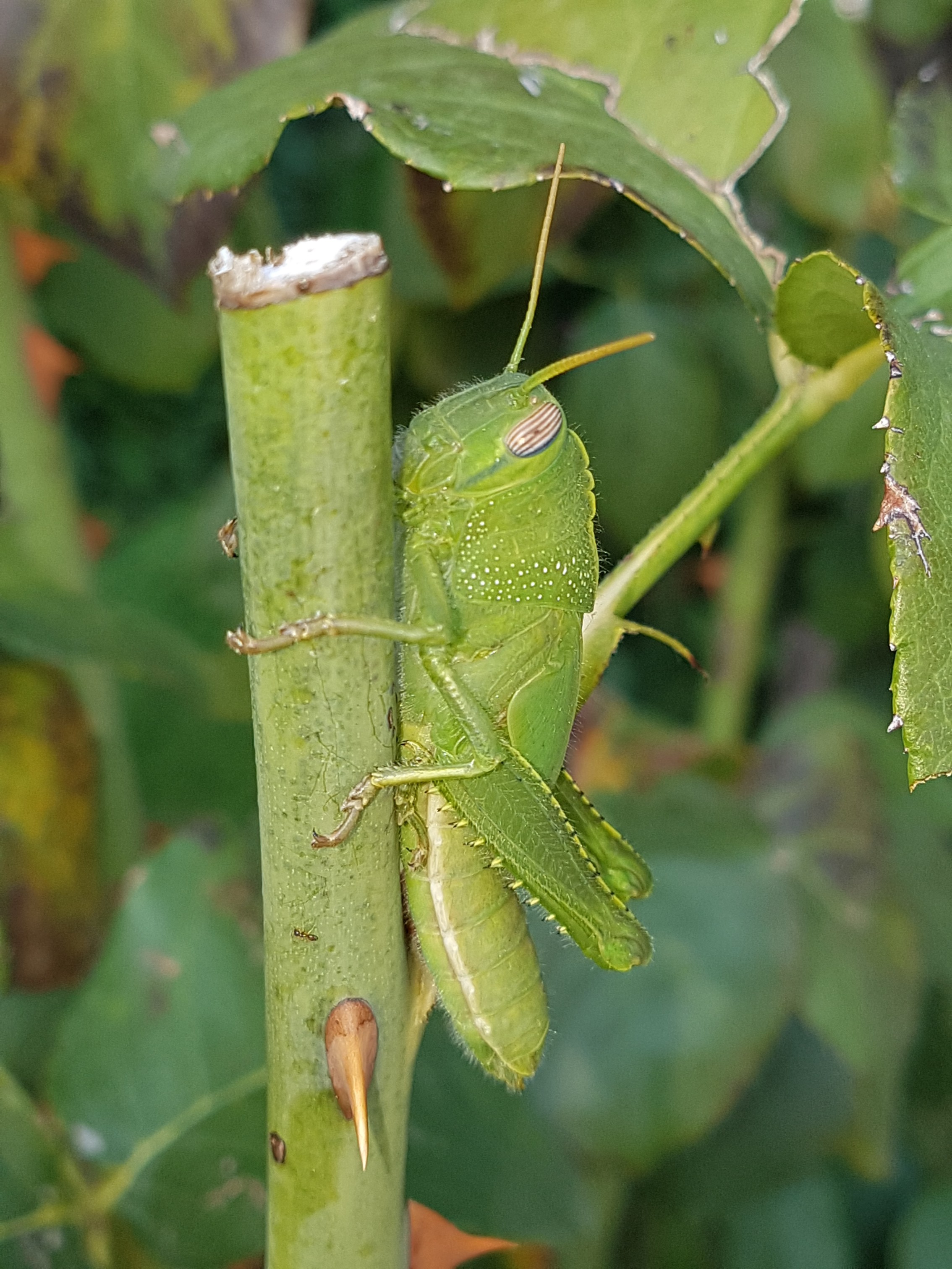 Ciao a tutti, ho trovato questa cavalletta su una rosa in giardino.
