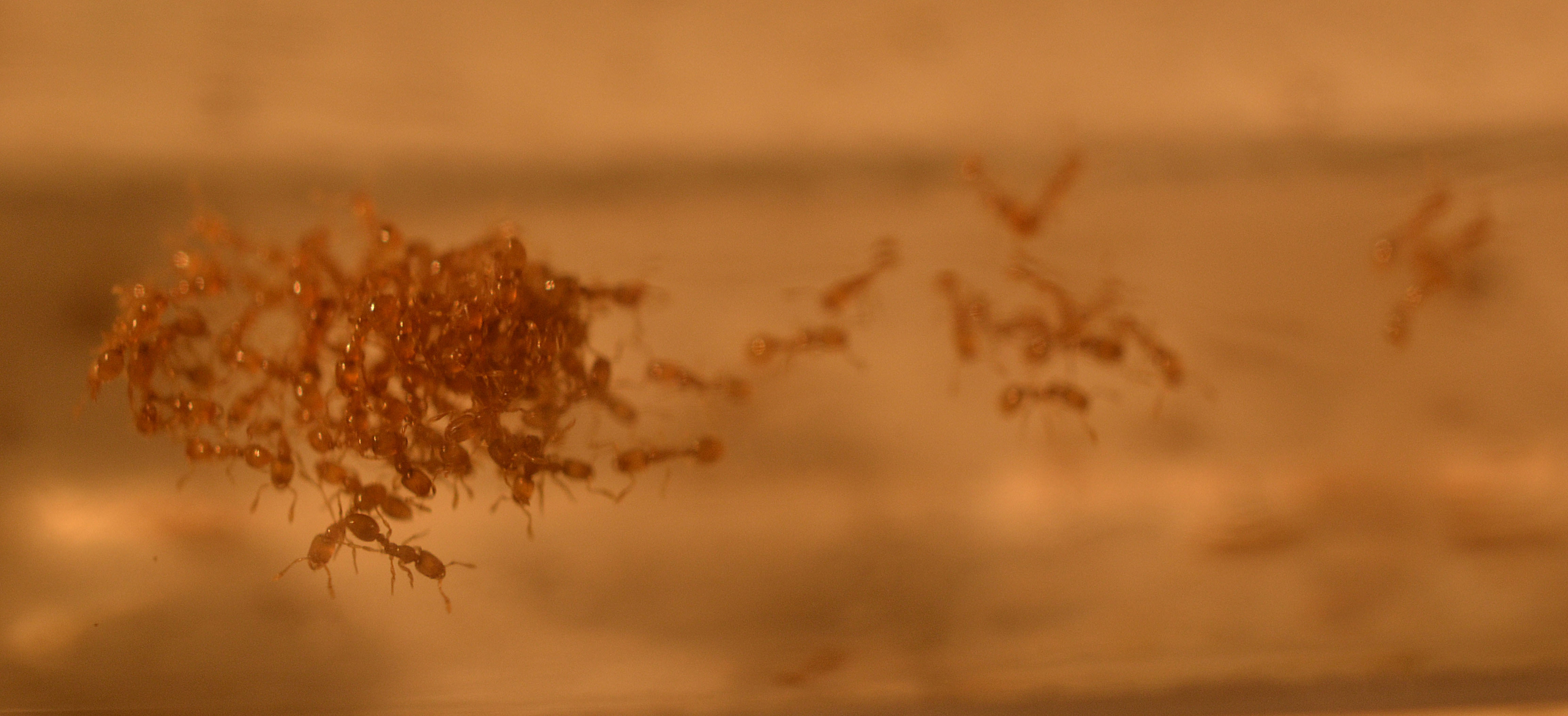 Negli ultimi giorni inoltre, hanno forato il tappo dell'attuale provetta/serbatoio entrando nella parte contenente l'acqua. Qui ho potuto notare il loro comportamento in risposta a questa situazione. Le operaie hanno subito formato un piccolo agglomerato utilizzando i loro corpi, mentre altre si sono messe a 'passeggiare' sopra la superficie dell'acqua stessa...degne delle loro cugine! Per il momento le lascio fare e mi limito ad osservare, sono comunque una minima parte della colonia.