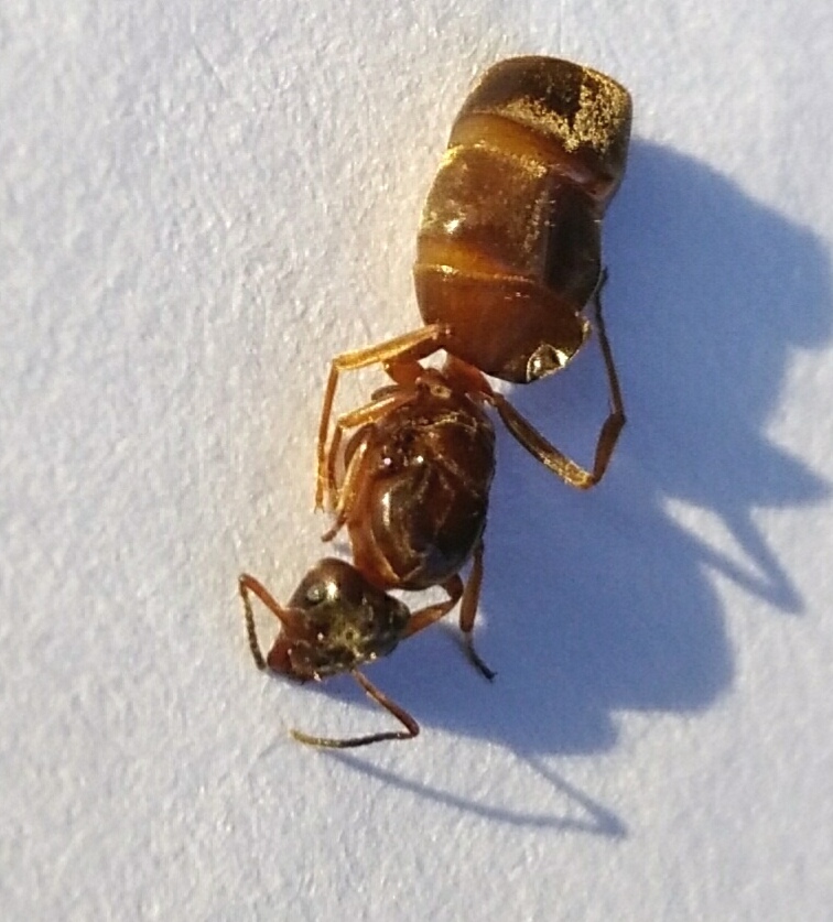 Si tratta forse di L. flavus? In questo caso le due regine che ho messo in provetta appartengono alla stessa specie essendo, a mia memoria, identiche. Purtroppo l'ho inavvertitamente schiacciata facendo pulizie.