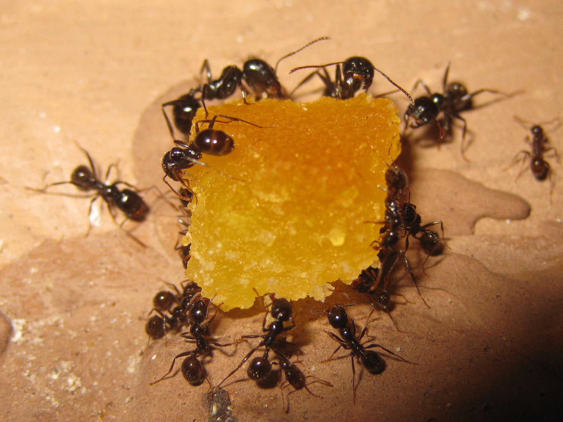 Ho trovato operaie a leccare il gesso anche ore dopo che l'acqua era stata assorbita, cosa che non avevo osservato con M. capitatus. Almeno non in questa misura.