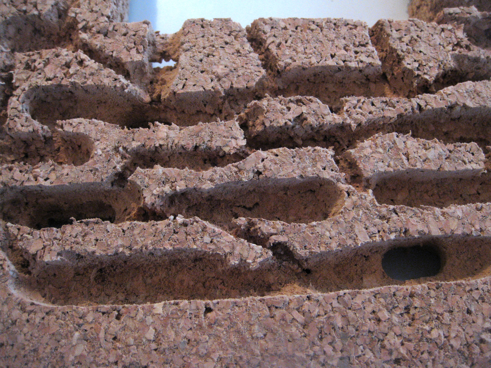 Il lock-down era finito e potevo anche andar fuori a reperire materiali migliori e adatti a ovviare gli errori del primo prototipo, ma ormai ero scoraggiato e anche un po’ arrabbiato con me stesso per aver sottovalutato un problema tutto sommato prevedibile. Così ho deciso di tornare al buon vecchio gasbeton, dove almeno sapevo che le formiche si erao ben adattate e che non dava problemi di gestione in quanto a umidità. Il nuovo nido stavolta non non avrebbe presentato una sola grande stanza piena di legno, che avrebbe potuto alla lunga essere svuotata e in cui il cartone sarebbe scivolato verso il basso, ma una serie di stanze ampie, profonde e alte, che sarebbero servite da scheletro per il nucleo delicato del cartone.