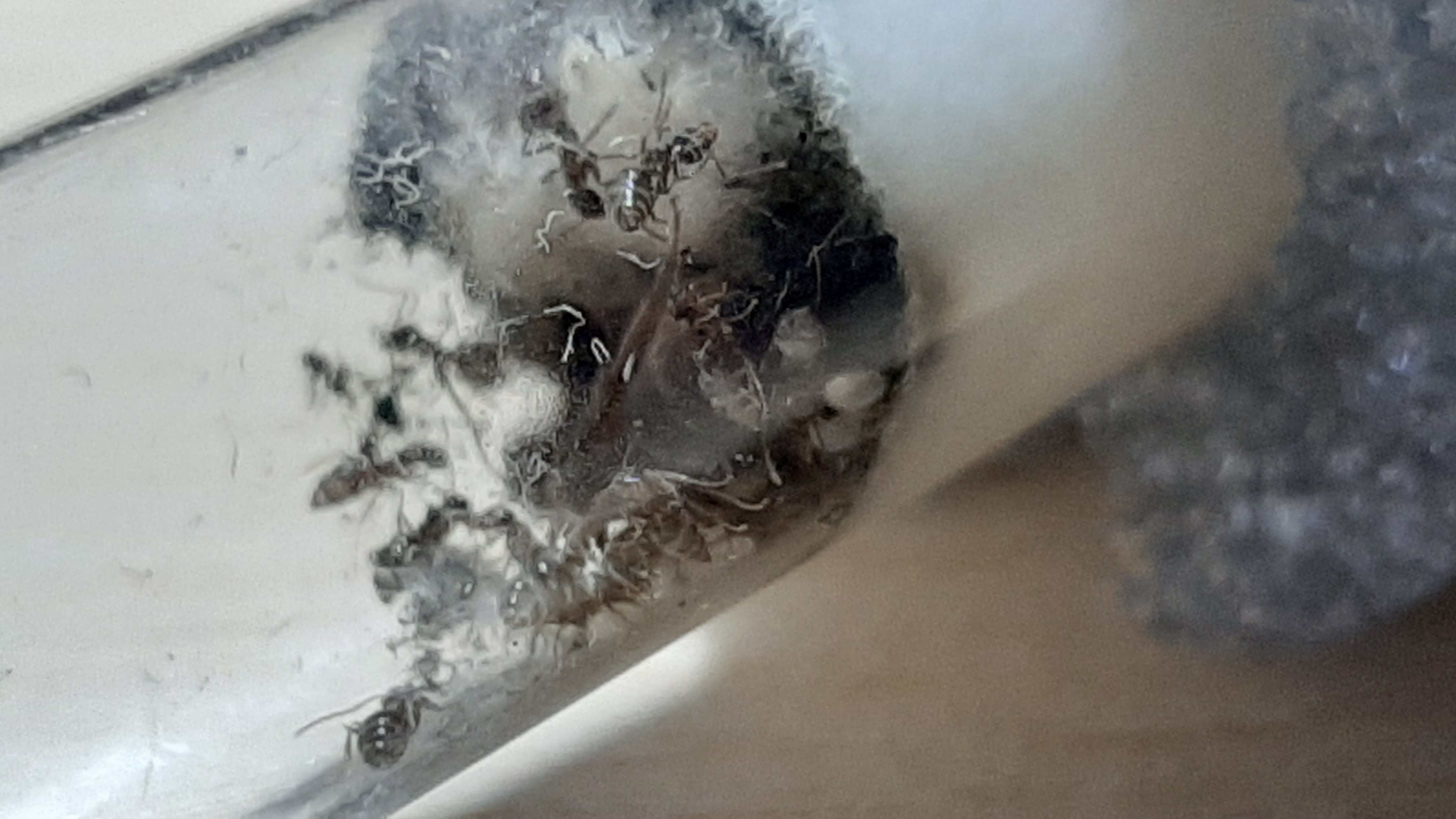A luglio ho trovato la mia prima regina, quella appunto di Lasius e dopo solo un mese sono nate le prime operaie. Fino ad ottobre, al raggiungimento delle 15 operaie, non mi ha mai dato nessun problema. Poi, quando sono arrivate ad un numero intorno alle 20 operaie, verso fine novembre, mi sono accorto che il cotone della provetta era totalmente nero. No problem, le trasferisco in un'altra nuova, e' normale.