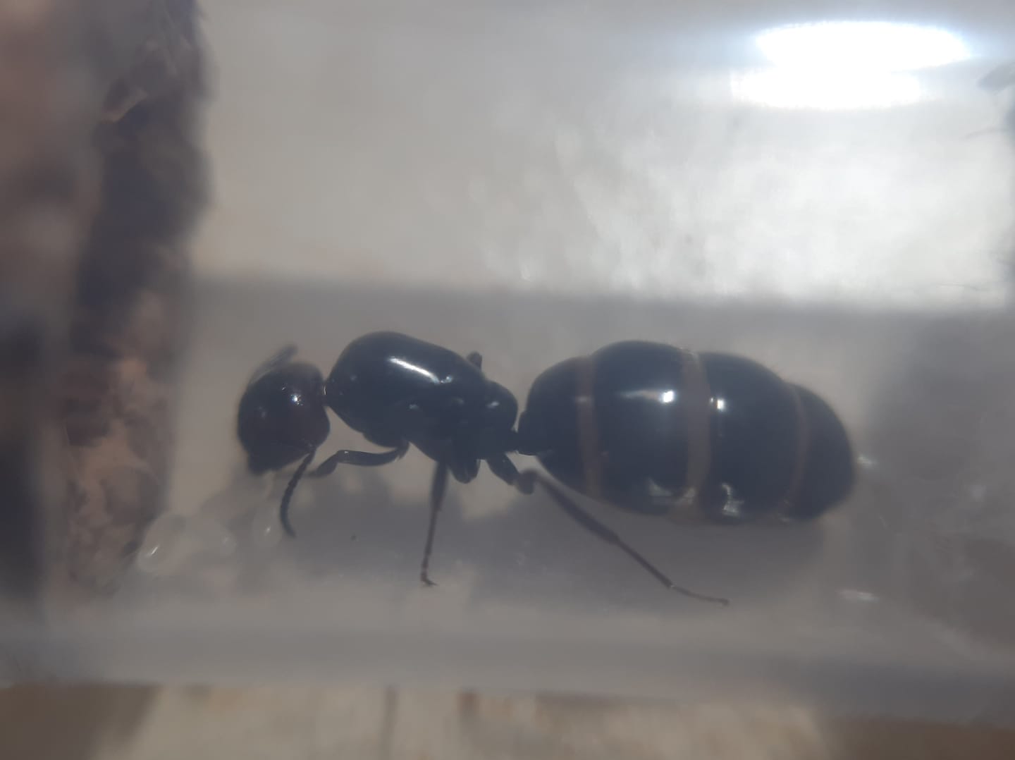 la forma del corpo. Inconfondibile. Molto simile a quella delle Crematogaster scutellaris ma piu' grosse e allungate. Alla nascita della prima operaia scopriremo meglio la specie. Per ora sappiamo che e' una delle due, ma magari ci sono altre opzioni che non ci vengono in mente