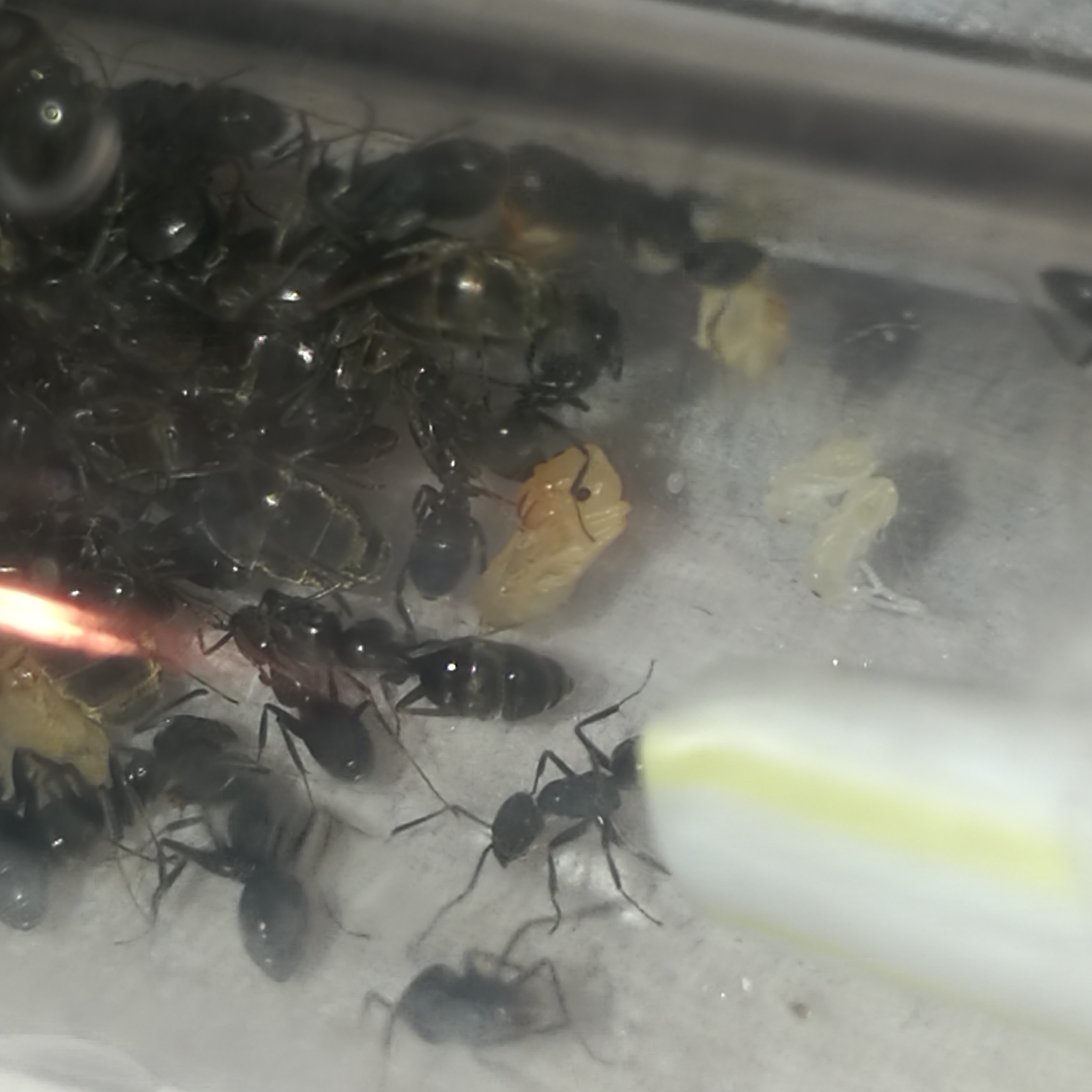 colonia enorme che vive in un tronco morto a causa dei lavori in corso (umani) la colonia si sta trasferendo, stimo centinai di regine visto che ne ho viste almeno 30 in pochi minuti.