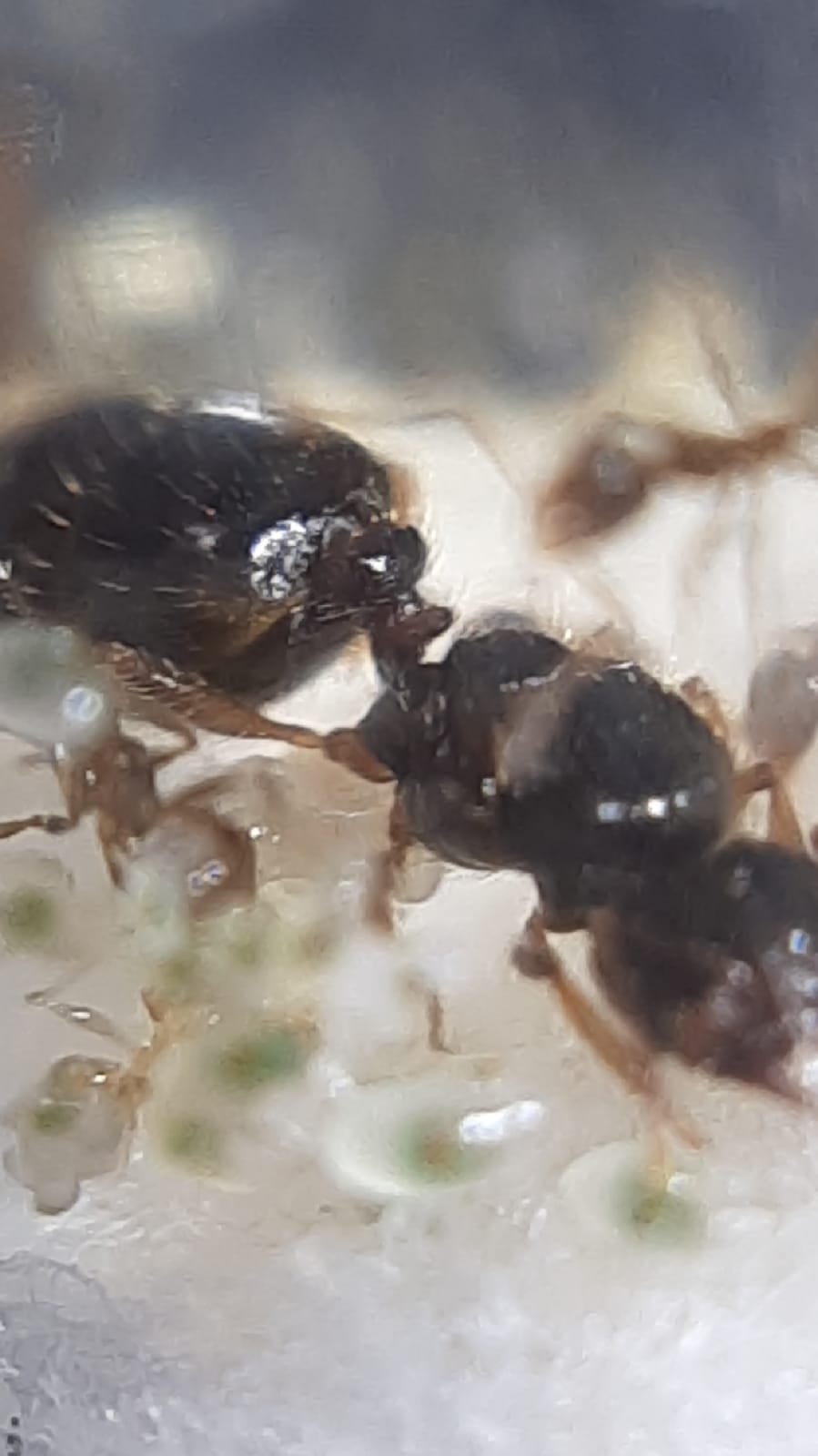 Regalata da un mio conoscente, che sapendo i miei disagi con le Pheidole mi ha mandato questa. Ha le stesse dimensioni di una Pheidole pallidula per intenderci, ma il colore e' diverso. Quante specie esistono di Pheidole in italia? Questa qual'e'? Grazie