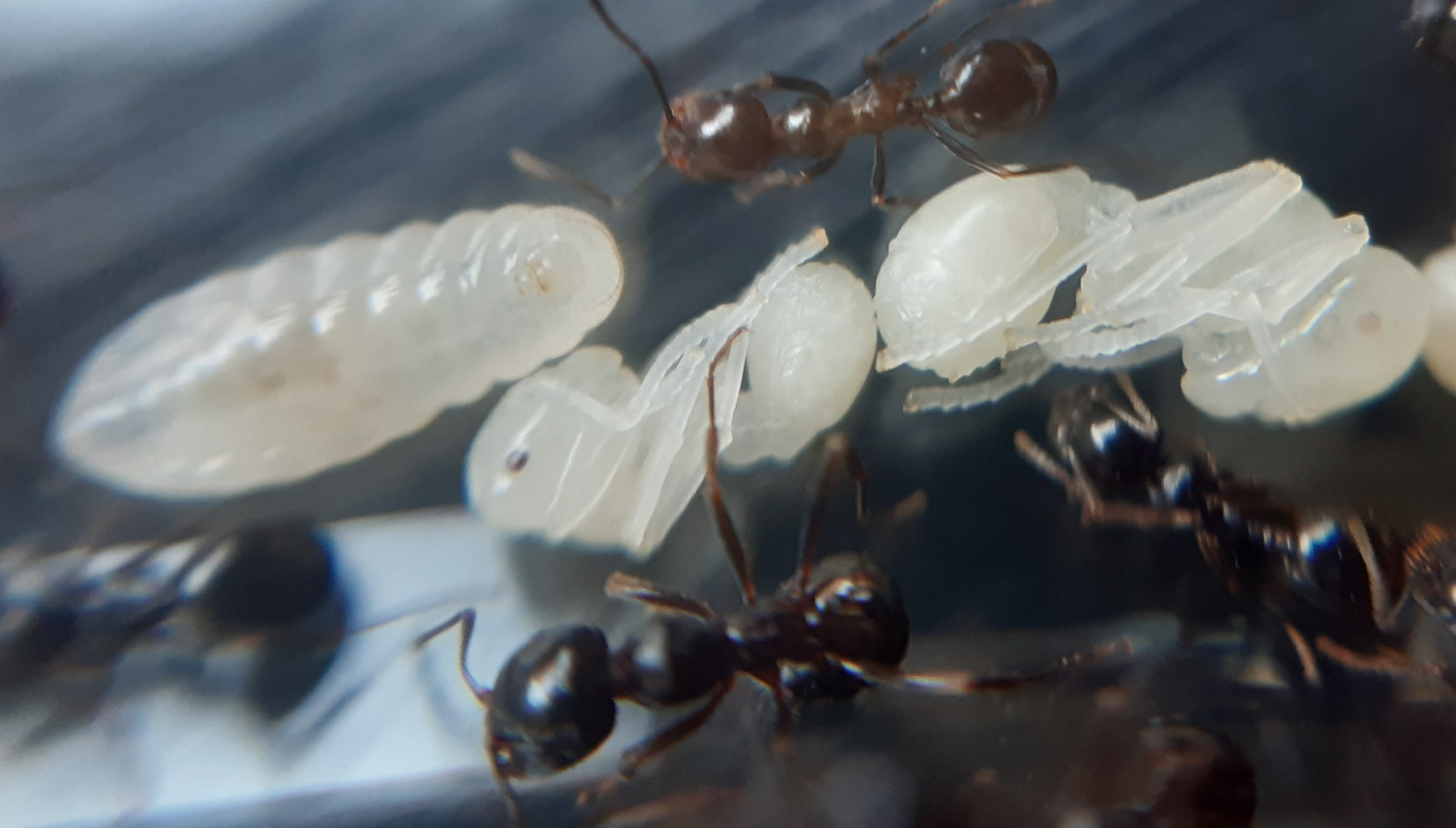 In cortile ho un formicaio (all'apparenza) di Pheidole pallidula. A giugno, luglio sciamano e cercando di aumentare la mie chance di trovare una regina, li sto imbottendo di cibo con la speranza che producano più maschi e regine. Comunque sia resta sempre bellissimo osservarle.