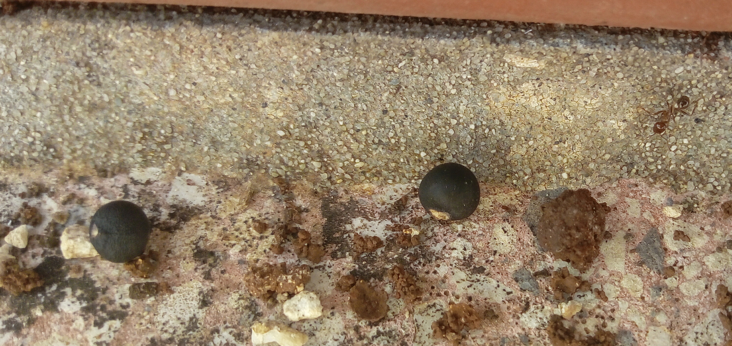 Salve a tutti, sapreste identificare la specie in foto? E sapreste dirmi cosa sono quelle palline nere?