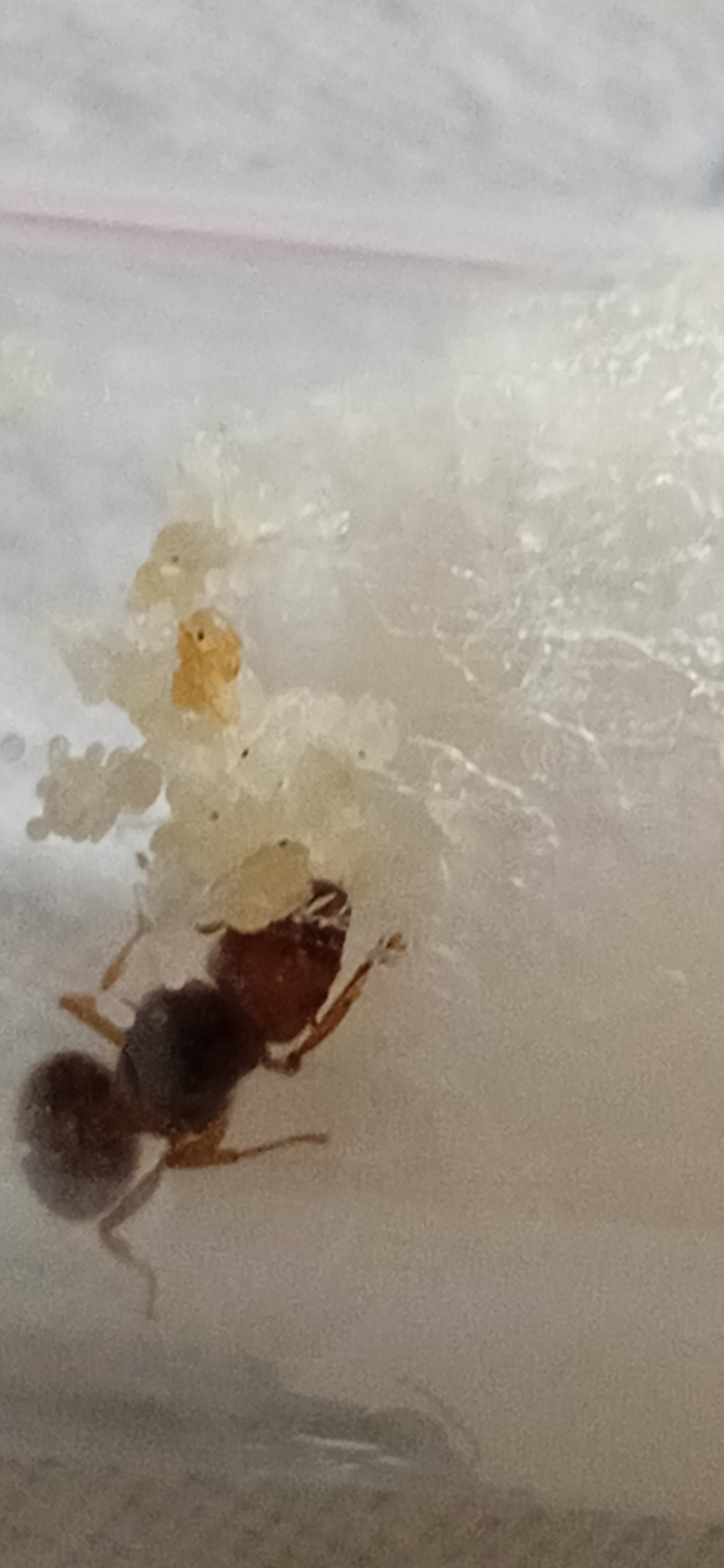 Dall'ultimo controllo è risultato che le ultime 2 regine catturate abbiano fatto un pò di uova mentre nelle provette delle altre 2 regine sono sbucate le prime larve, ma in una ce ne sono molte più che nell'altra e le larve mi sembrano meno appiccicose delle uova, cioè, le larve quando si gira la provetta cadono, men tre le uova no. è normale???