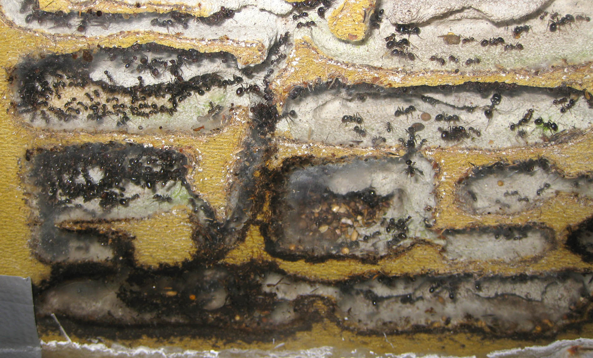 Il nido che ho rimpiazzato dovrebbe resistere a lungo, sempre salvo imprevisti. Il tasso di umidità fornito alla colonia dovrebbe cambiare ed essere gestito in maniera diversa, cosa che spero eviterà accumuli di sporcizia interna e possibilità che scavino ancora in maniera massiccia.