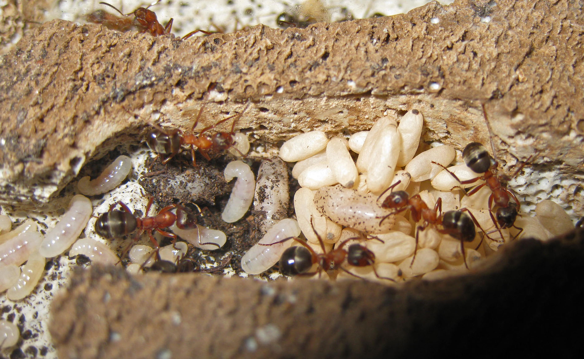 Dopo che la mia colonia poliginica si è autodecimata la regina ha nuovamente deposto una decina di uova , l'altra regina non ce l'ha fatta purtroppo e con lei sono morte 5 operaie , ora spero solo che le mie Formica cunicolaria imbozzolino le larve prima delle altre in modo da avere un po di forza lavoro da dare alla povera coloniette , purtroppo le mie F. cunicolaria il tubo non lo considerano proprio come un'incubatrice , la temperatura di 23 gradi a loro piace abbastanza da non scaldare ulteriormente la prole