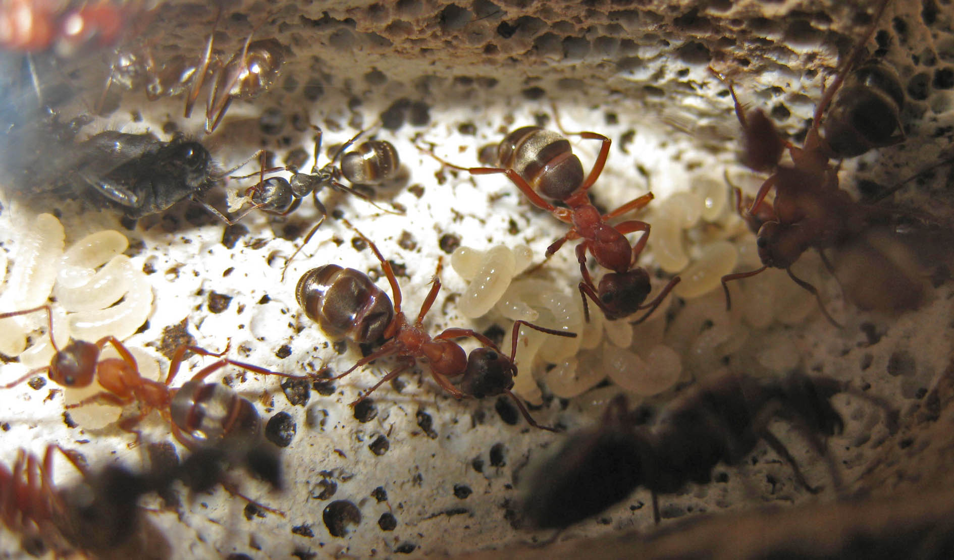 Dopo che la mia colonia poliginica si è autodecimata la regina ha nuovamente deposto una decina di uova , l'altra regina non ce l'ha fatta purtroppo e con lei sono morte 5 operaie , ora spero solo che le mie Formica cunicolaria imbozzolino le larve prima delle altre in modo da avere un po di forza lavoro da dare alla povera coloniette , purtroppo le mie F. cunicolaria il tubo non lo considerano proprio come un'incubatrice , la temperatura di 23 gradi a loro piace abbastanza da non scaldare ulteriormente la prole