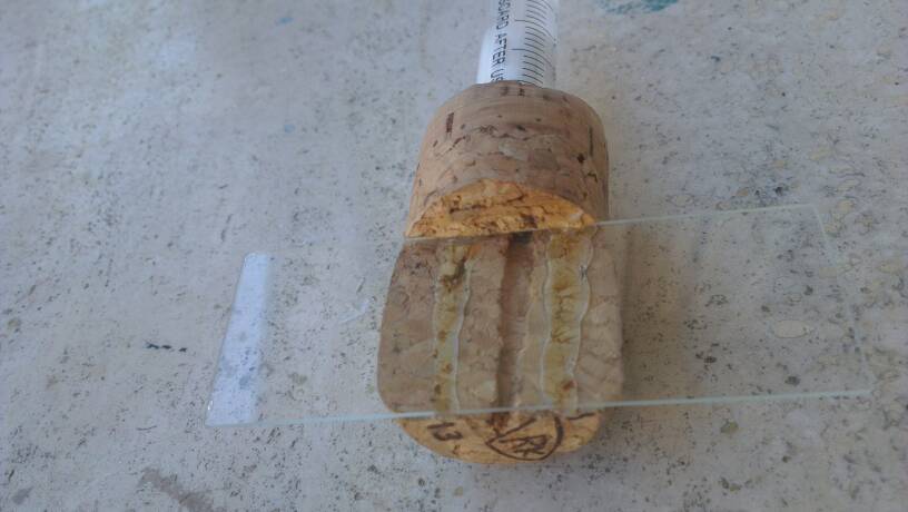 Foto di repertorio. Non è il rametto in questione, ma quello che già conteneva la regina. E' comunque quasi uguale. Come puoi vedere il canaletto è strettissimo e questo favorisce la tesi di Luca che suppone che siano le misure e non il materiale a contare. Questo canaletto è l'equivalente del tubicino usato da quercia. Se vuoi posso prendere proprio questo rametto (ce lo ho ancora) e aprirlo per vedere l'interno. Anche io sono molto curioso per sapere se per esempio dentro la camera si allarga (ma non credo).