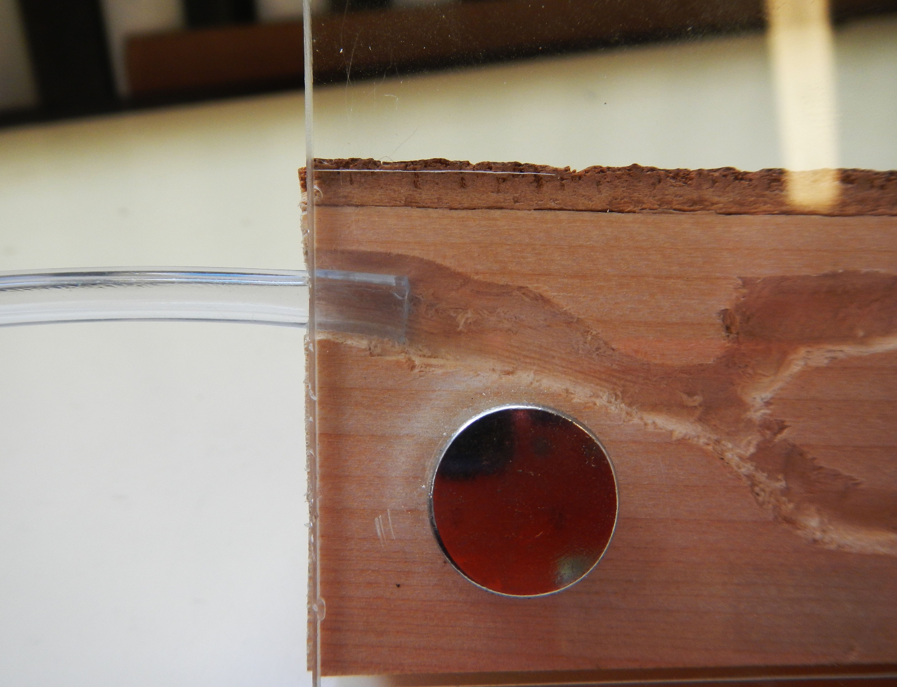 Un dubbio: visto che il plexiglass è tenuto con solo due viti alle estremità, se col tempo il legno si imbarcasse a causa delle variazioni nell'umidità, non c'è il rischio che si creino fessure tra il legno e il plexiglass, da cui le formiche scapperebbero? Non sarebbe stato meglio mettere anche un paio di viti in posizione più centrale?