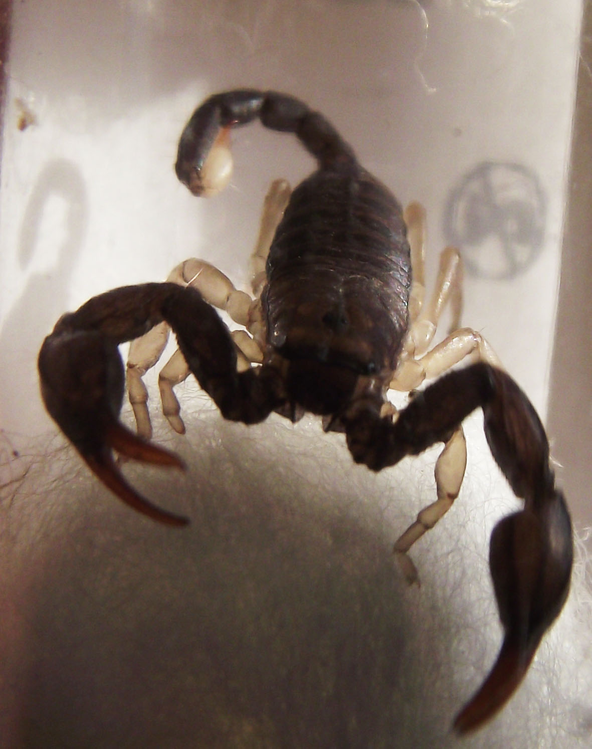 Sì è vero, nella foto non lo avevo proprio notato che la cuspide è gialla. Le zampe pallide mi sembra di aver visto che sono comuni a più specie e soprattutto potrebbe essere un'assenza di pigmentazione dovuta al fatto che sono giovani. Però dalle foto che ho visto hai ragione: solo Euscorpius flavicaudis tra le specie autoctone di questo genere ha la cuspide gialla e credo sia proprio la caratteristica che presta il nome alla specie